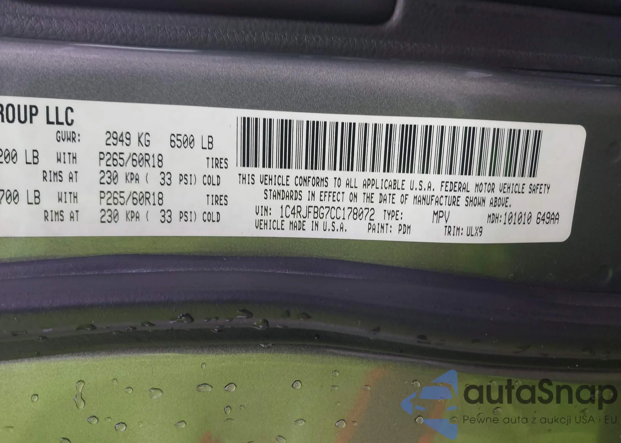 • VIN 1C4RJFBG7CC178072