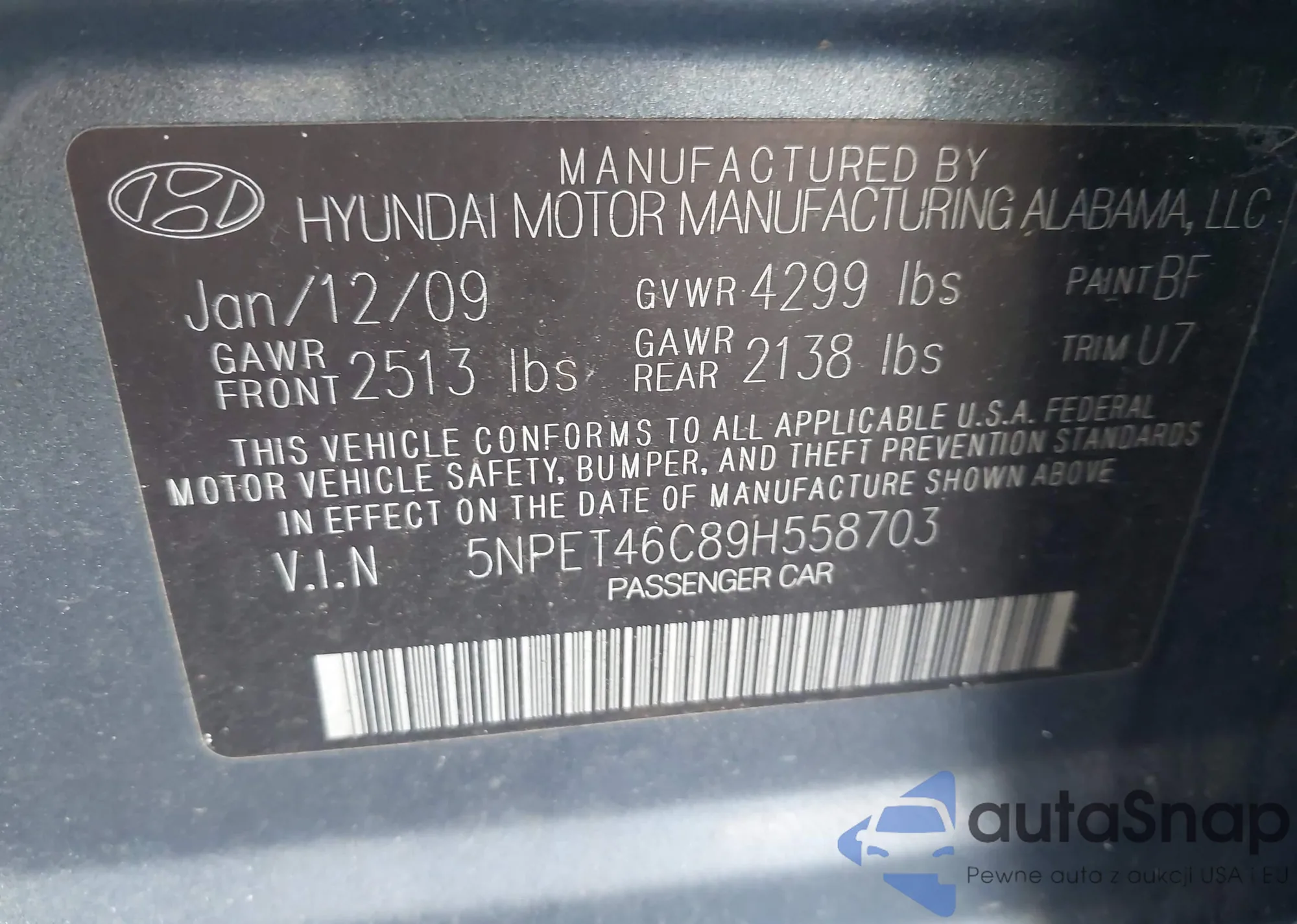 LOT: 43853441 VIN: 5NPET46C89H558703