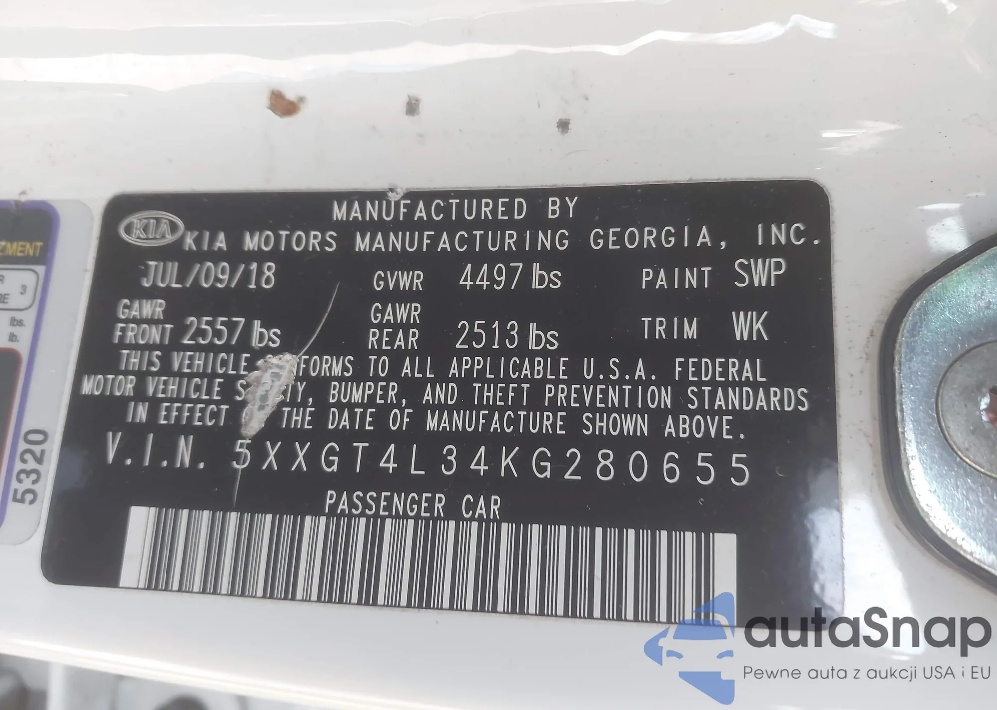 • VIN 5XXGT4L34KG280655