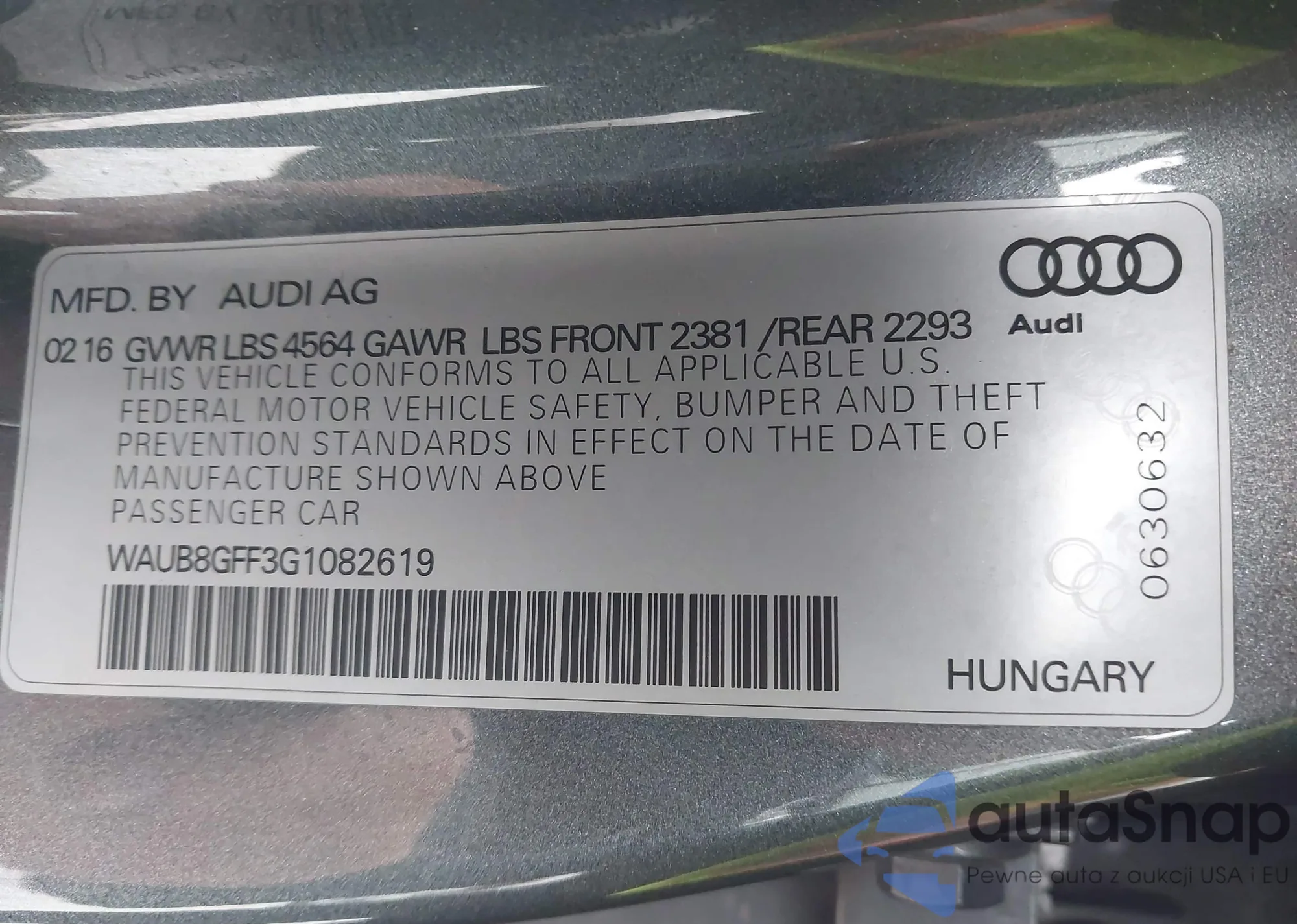 LOT: 43903035 VIN: WAUB8GFF3G1082619