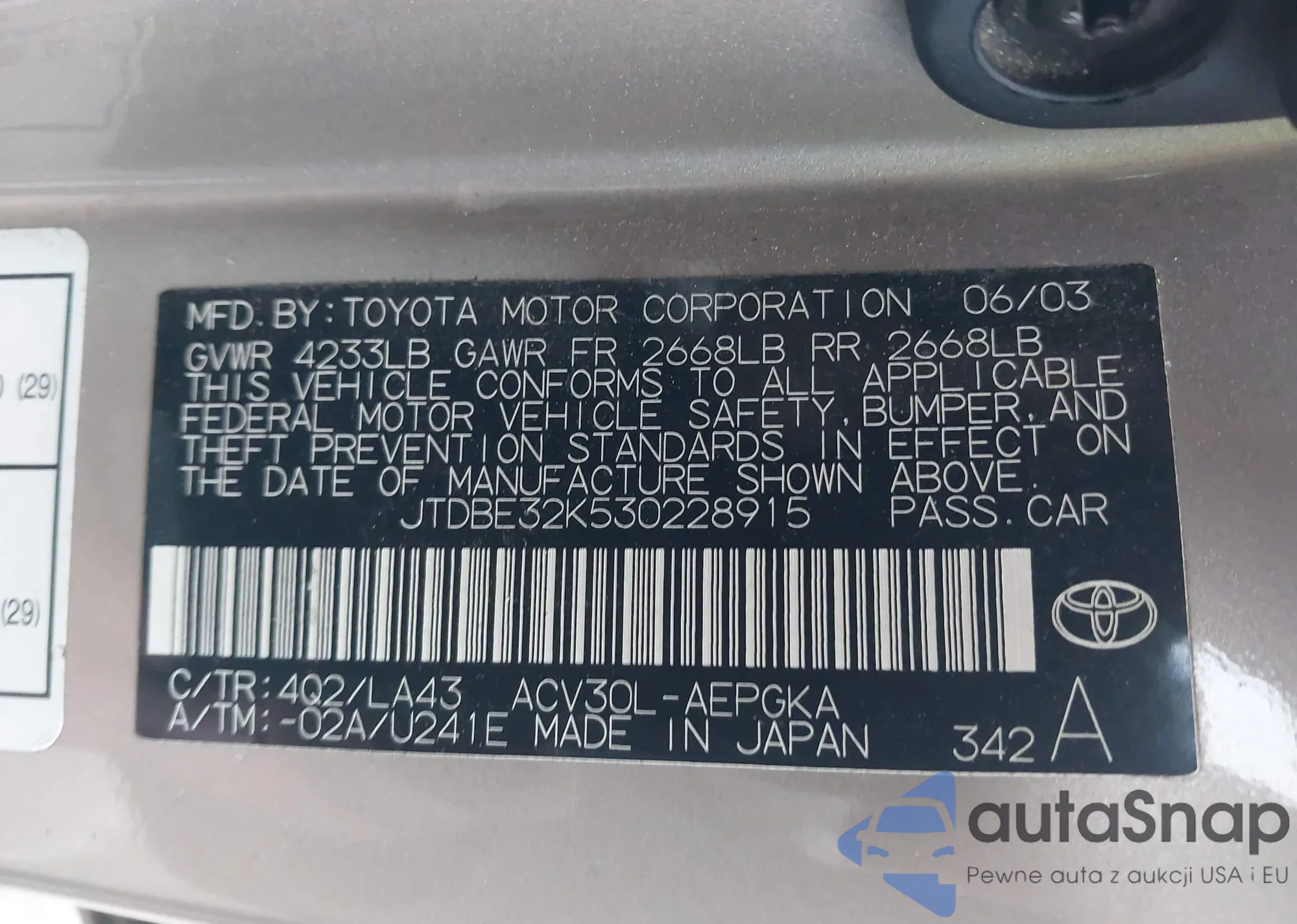 LOT: 44084688 VIN: JTDBE32K530228915
