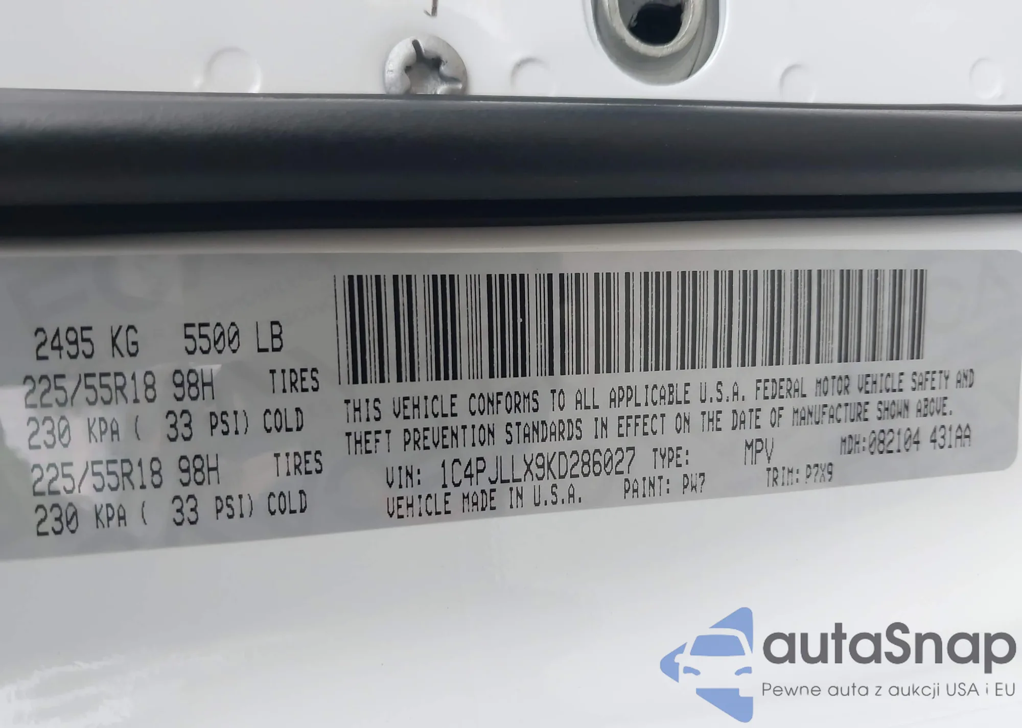 • VIN 2C3CDZC98PH573836