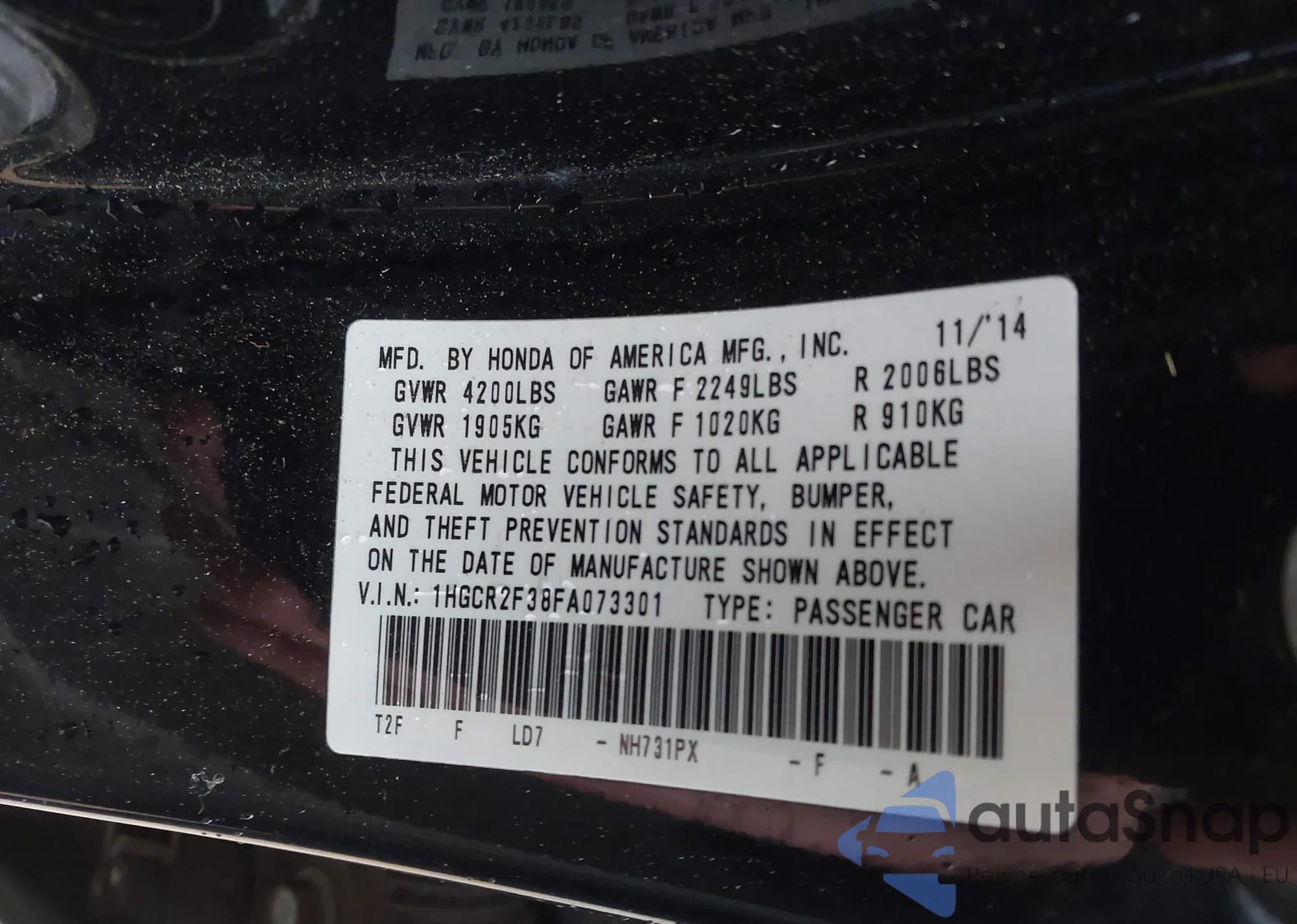• VIN 1HGCV1F10NA064966