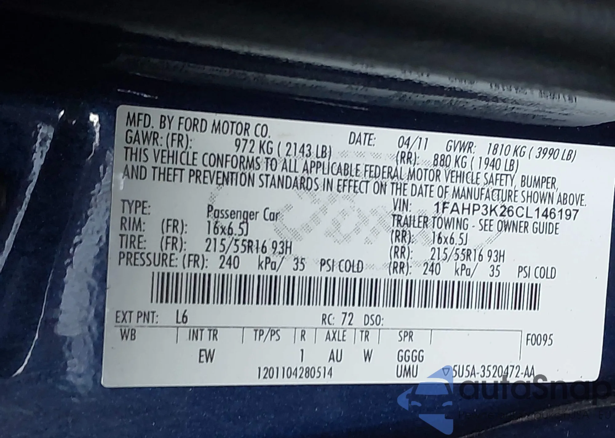 • VIN 1FAHP3K26CL146197
