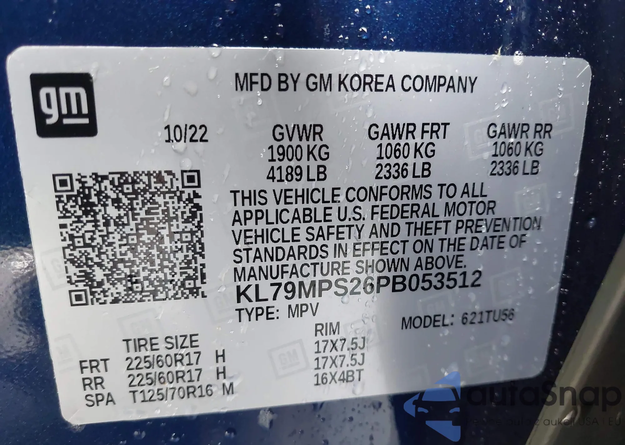 • VIN KL79MPS26PB053512