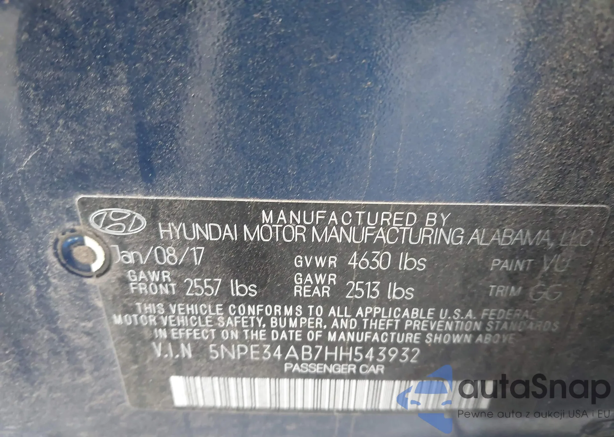 • VIN 5NPE34AB7HH543932