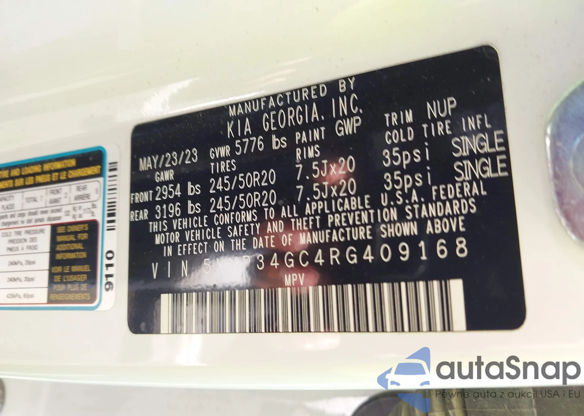• VIN 5XYP34GC4RG409168