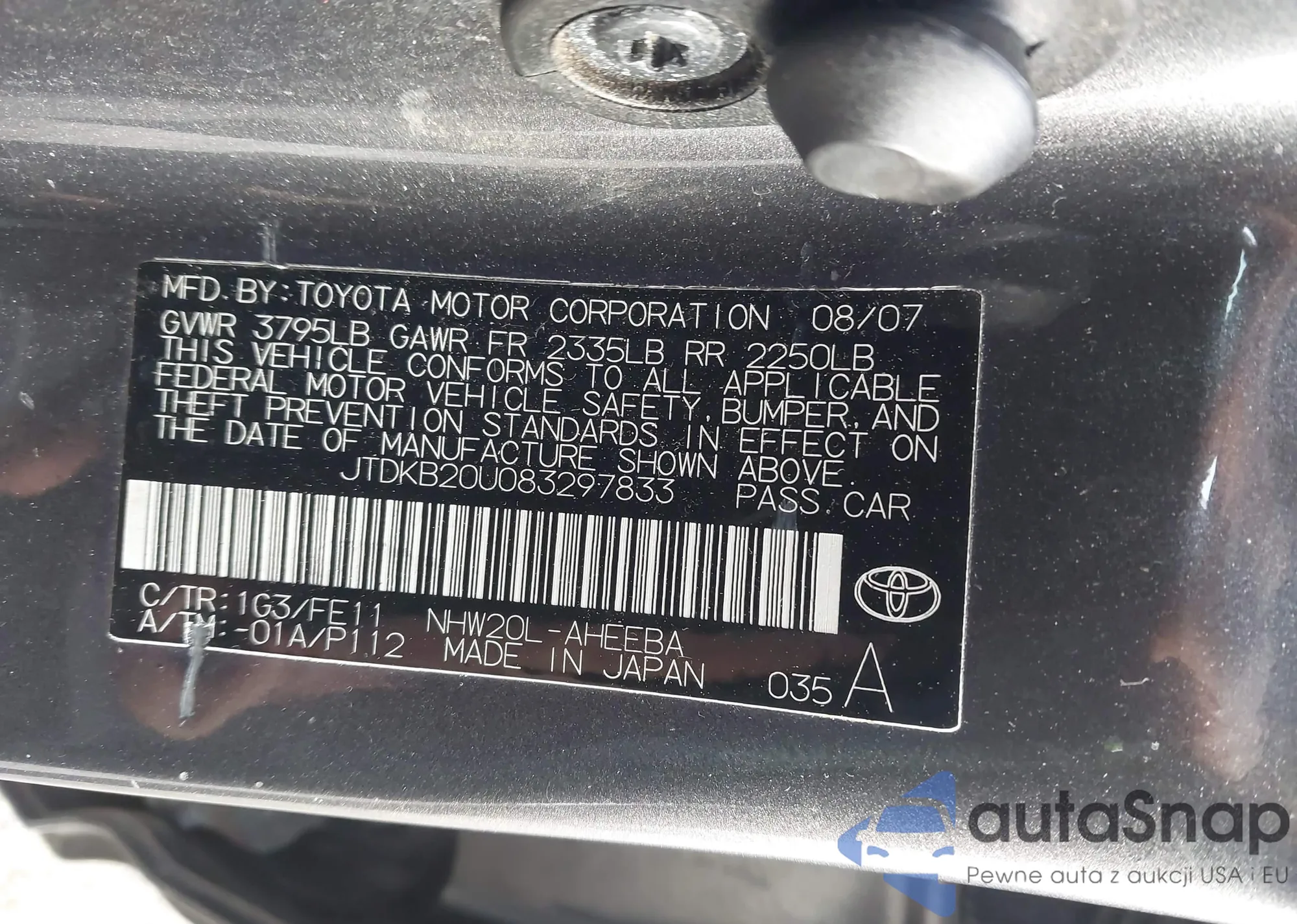 LOT: 43847964 VIN: JTDKB20U083297833