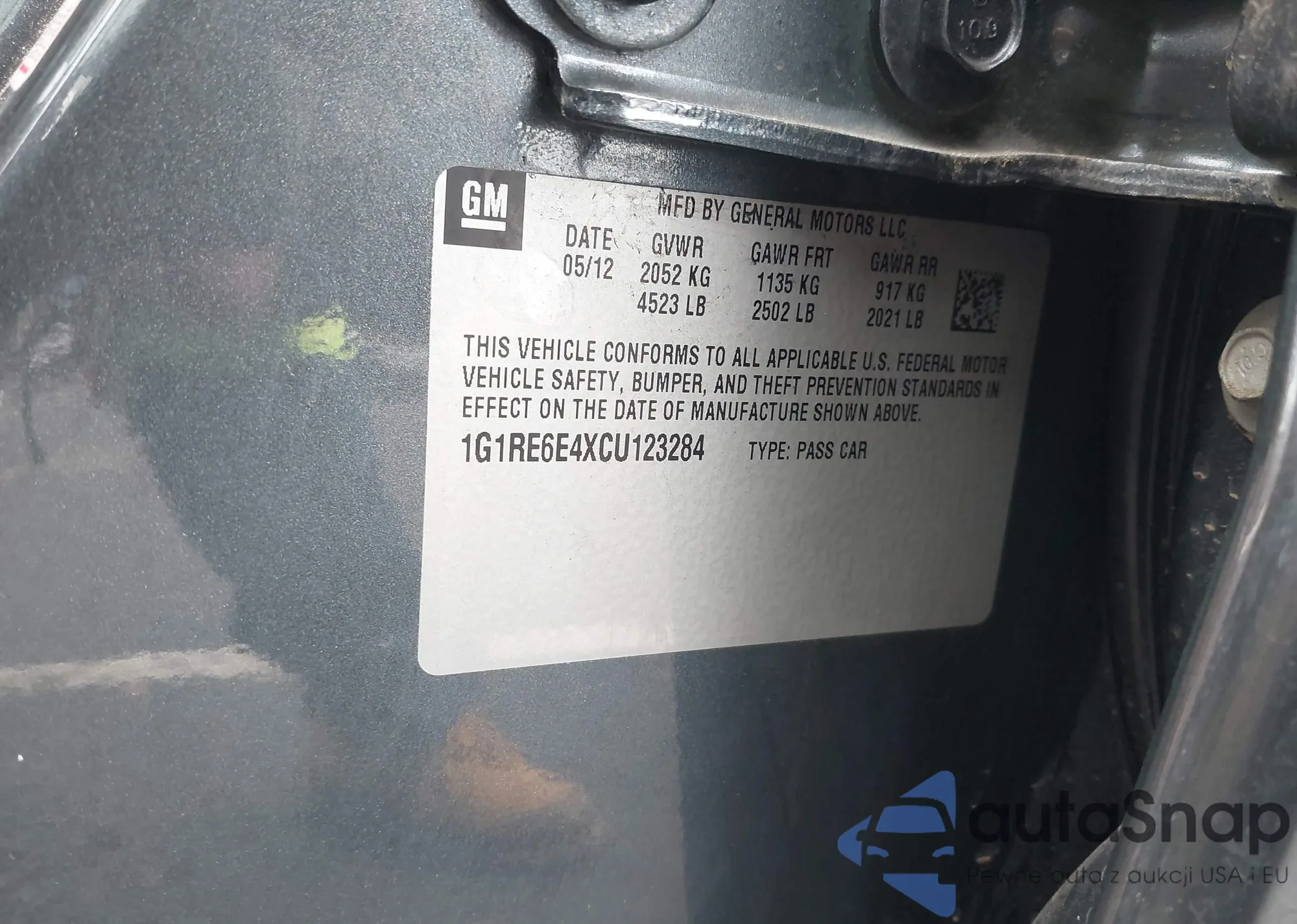 LOT: 43696123 VIN: 1G1RE6E4XCU123284