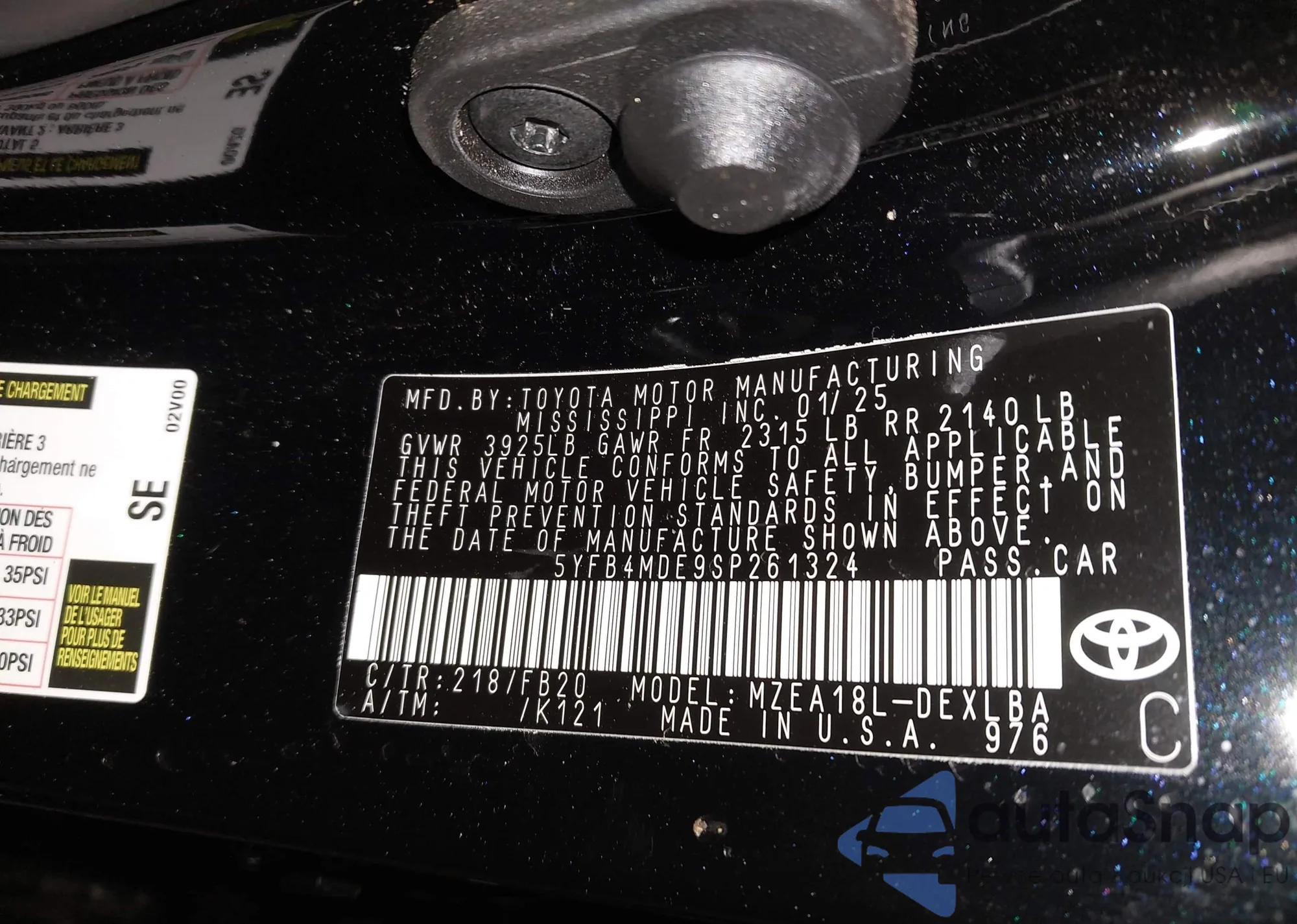 • VIN 5YFB4MDE9SP261324