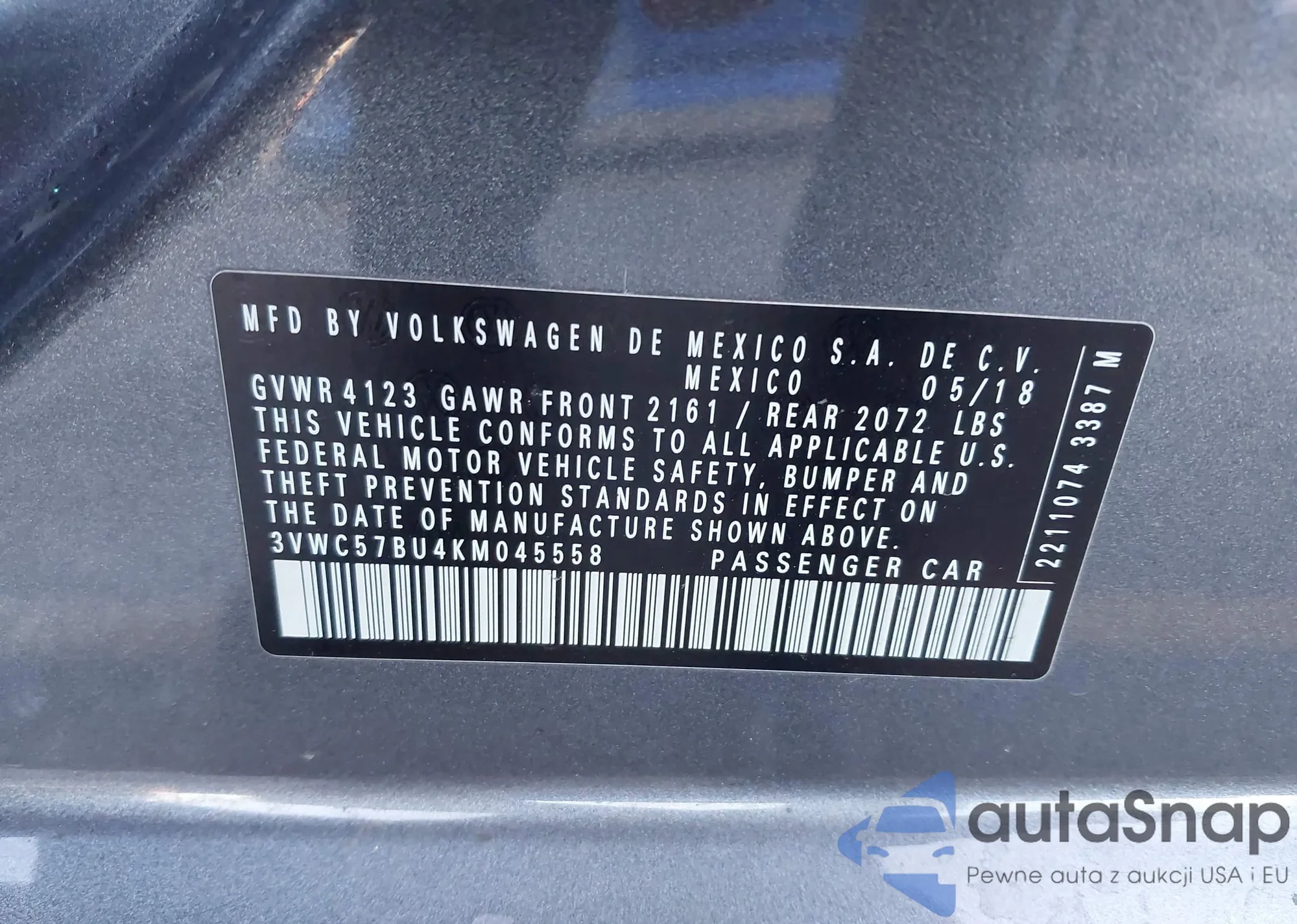 • VIN 3VWC57BU4KM045558