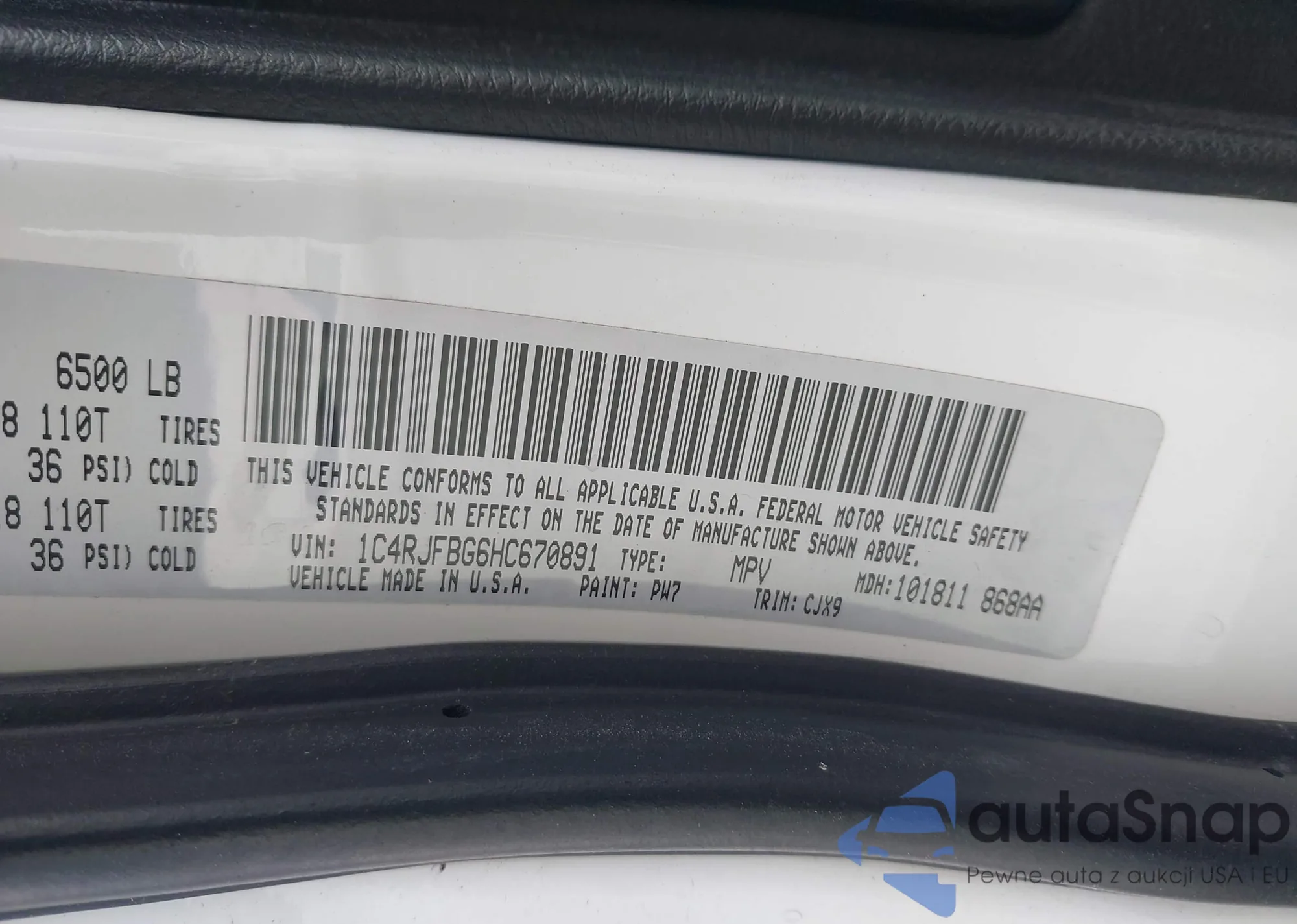 • VIN 1C4RJFBG6HC670891