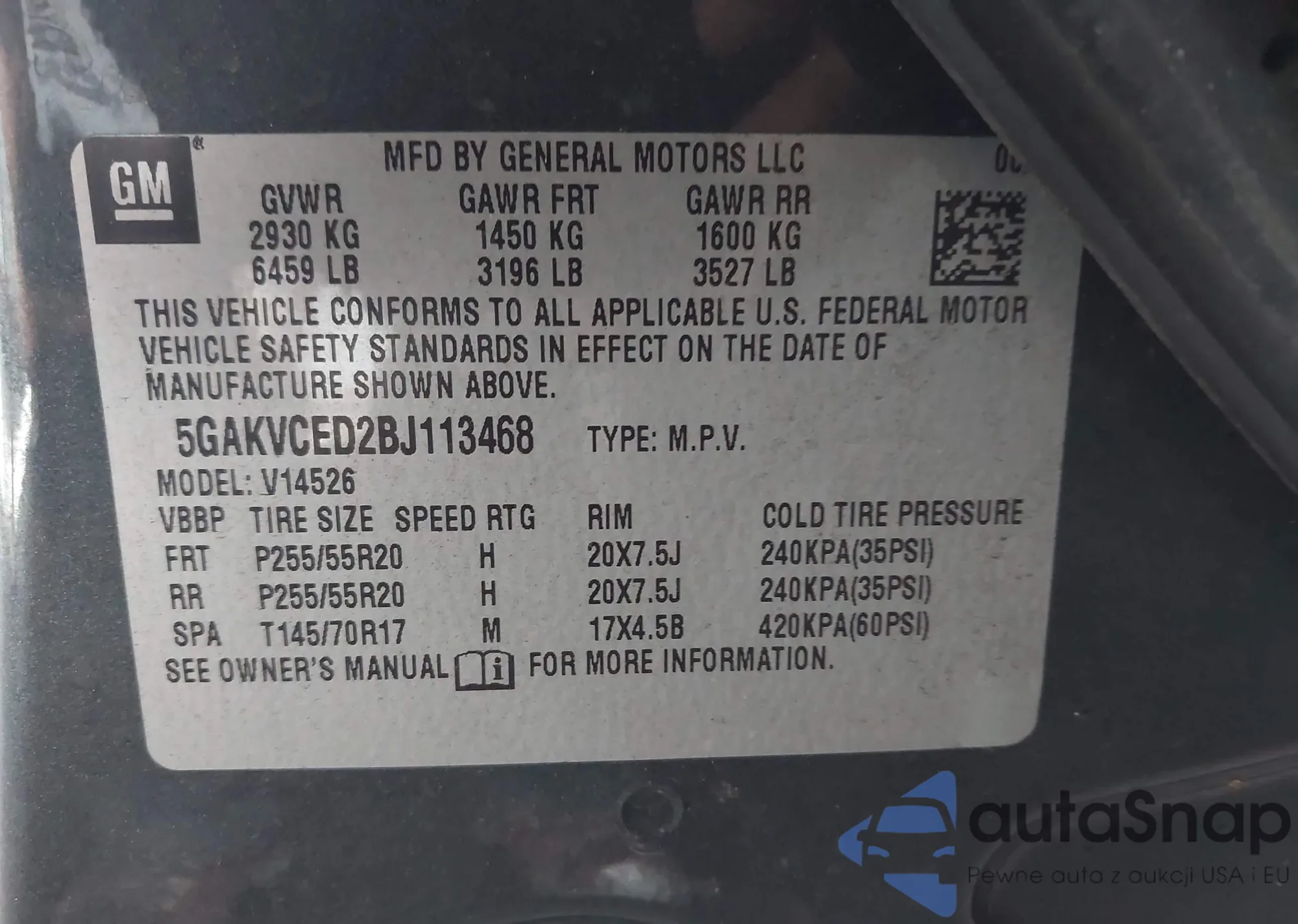 • VIN 5GAKVCED2BJ113468