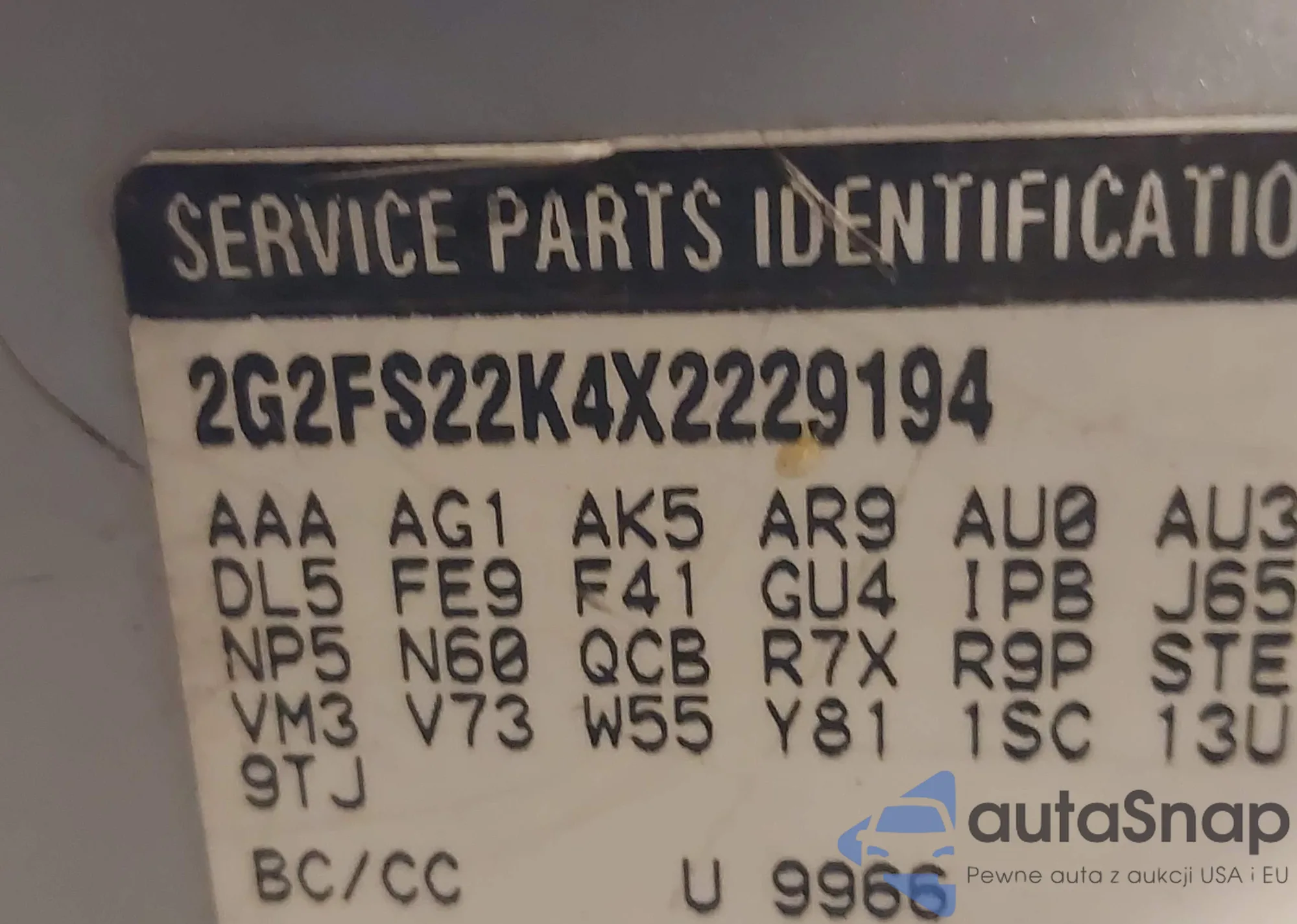 LOT: 44066294 VIN: 2G2FS22K4X2229194