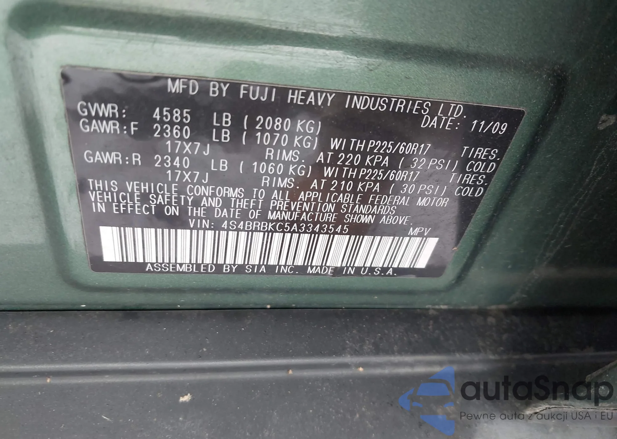 • VIN 1N4AA6AP5HC430641