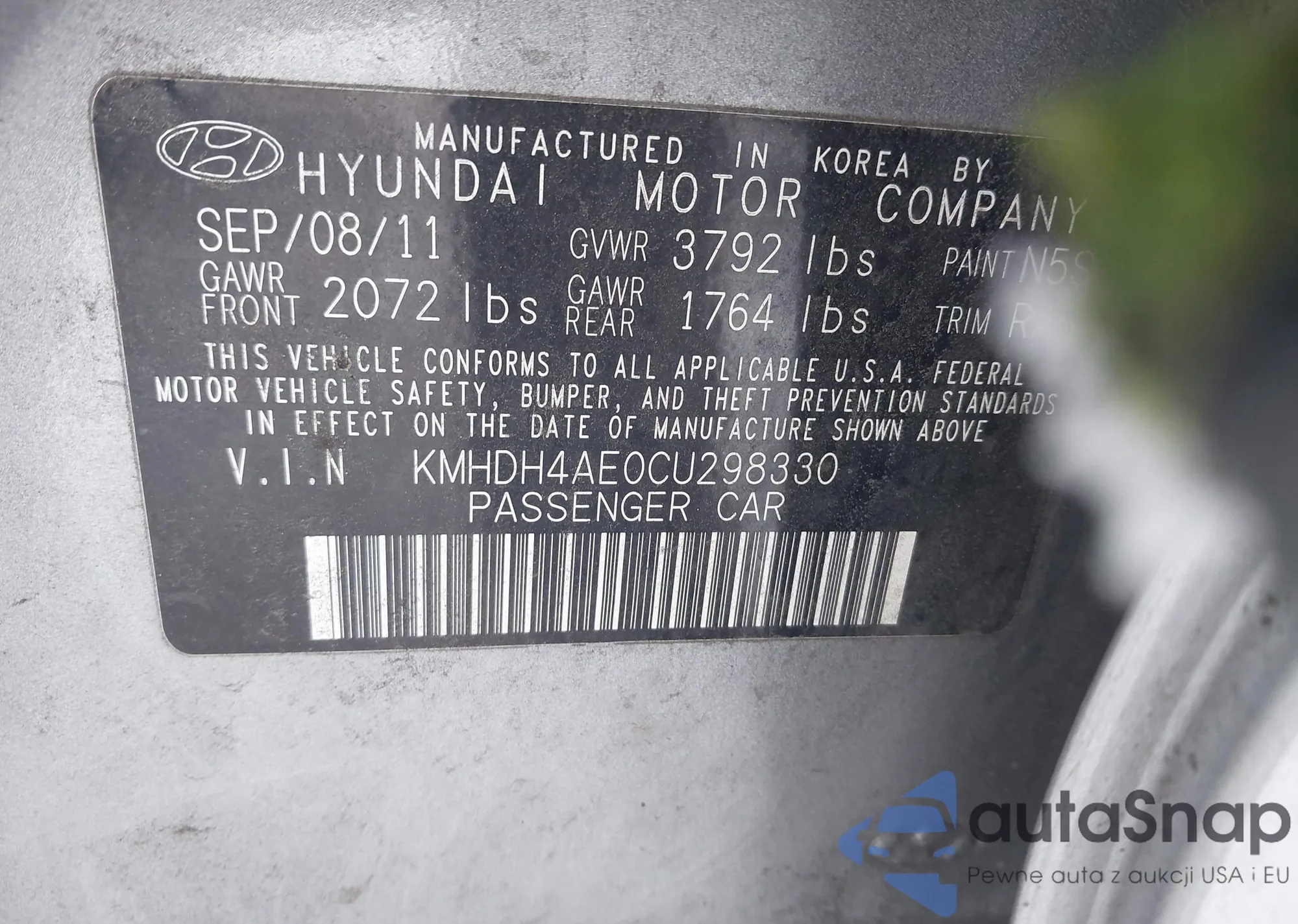 LOT: 44066011 VIN: KMHDH4AE0CU298330