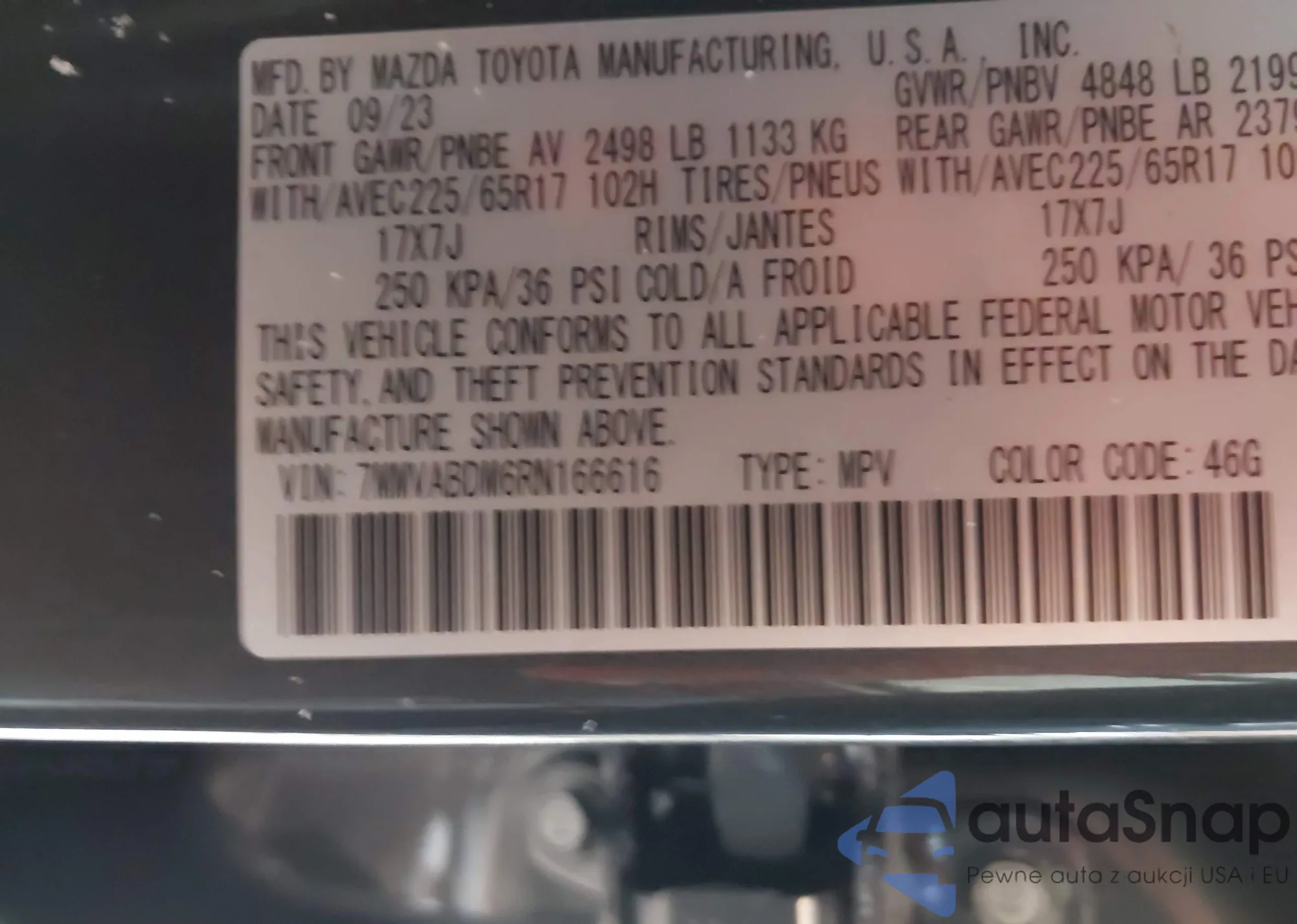 • VIN 7MMVABDM6RN166616