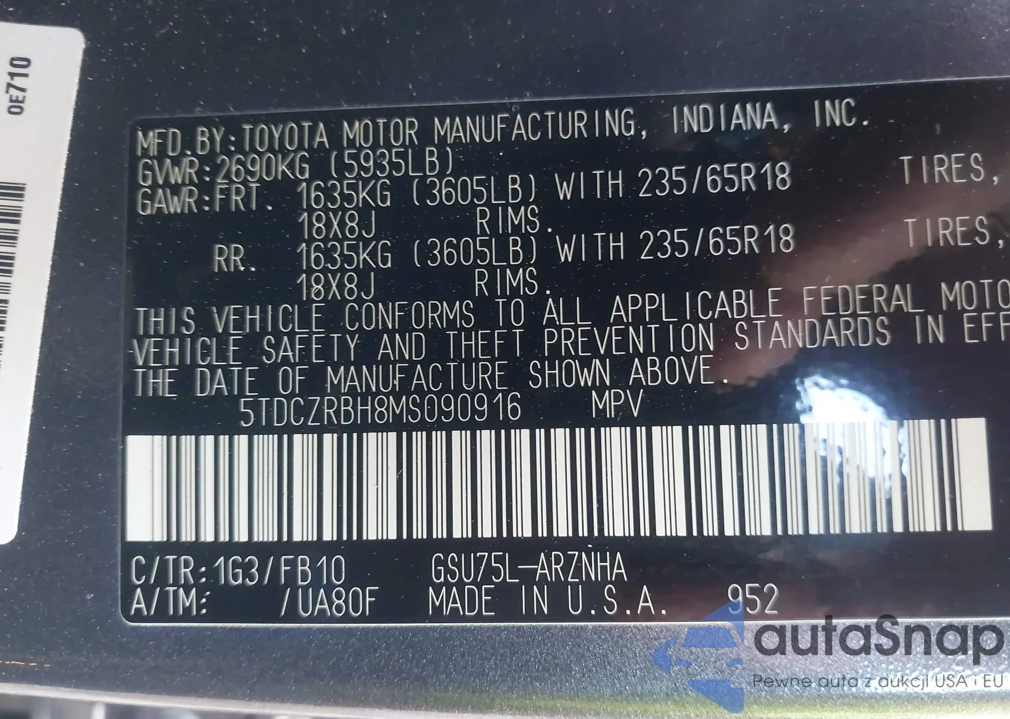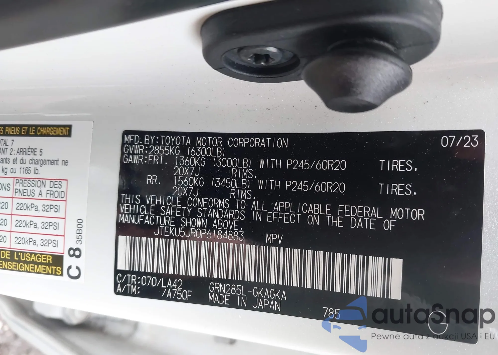 LOT: 43724806 VIN: JTEKU5JR0P6184883