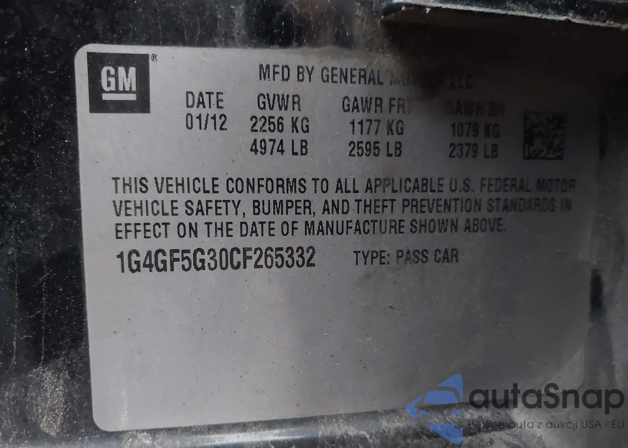 LOT: 44044493 VIN: 1G1JC6SH2C4129445