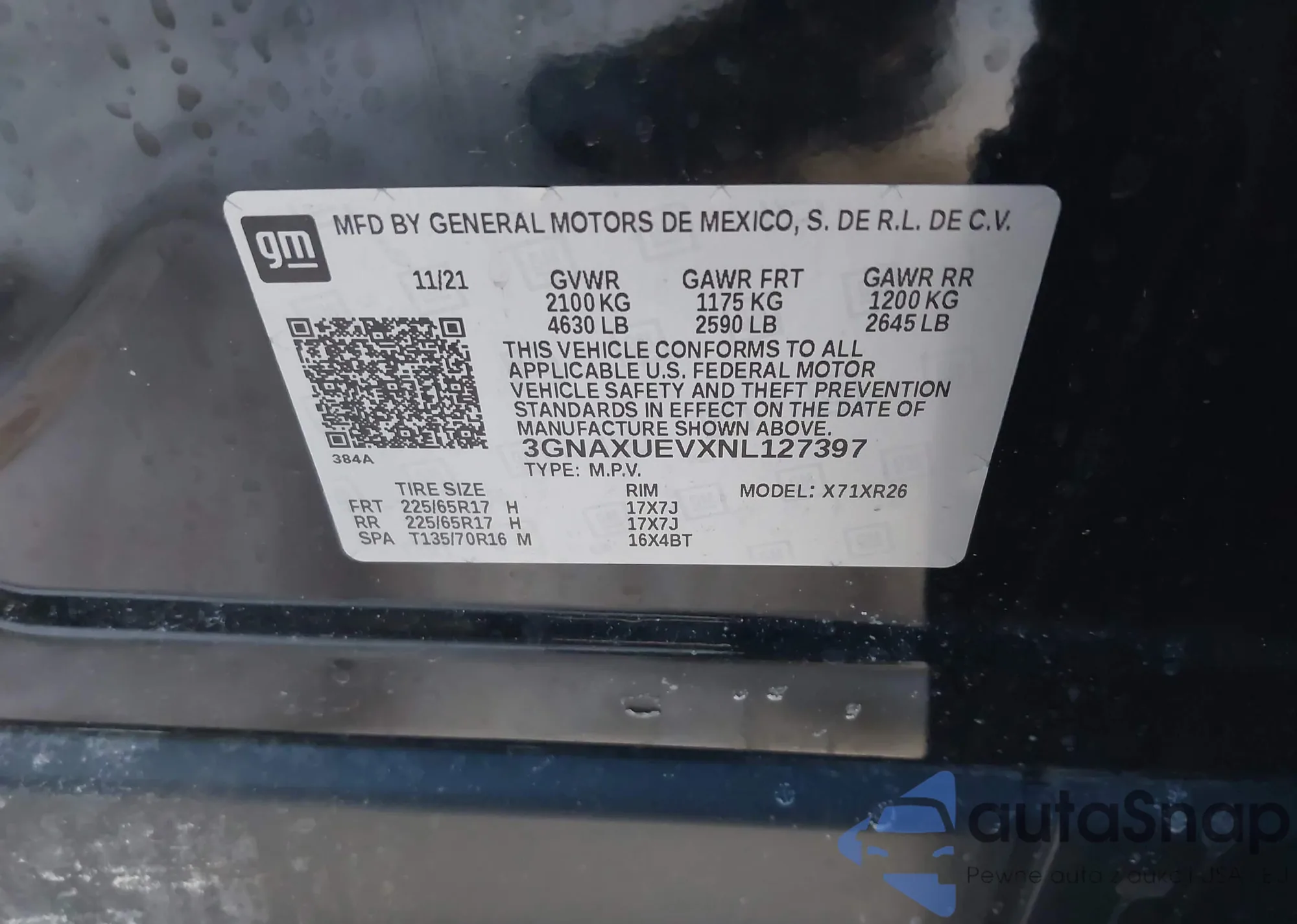 • VIN 2GNAXSEV3L6149473