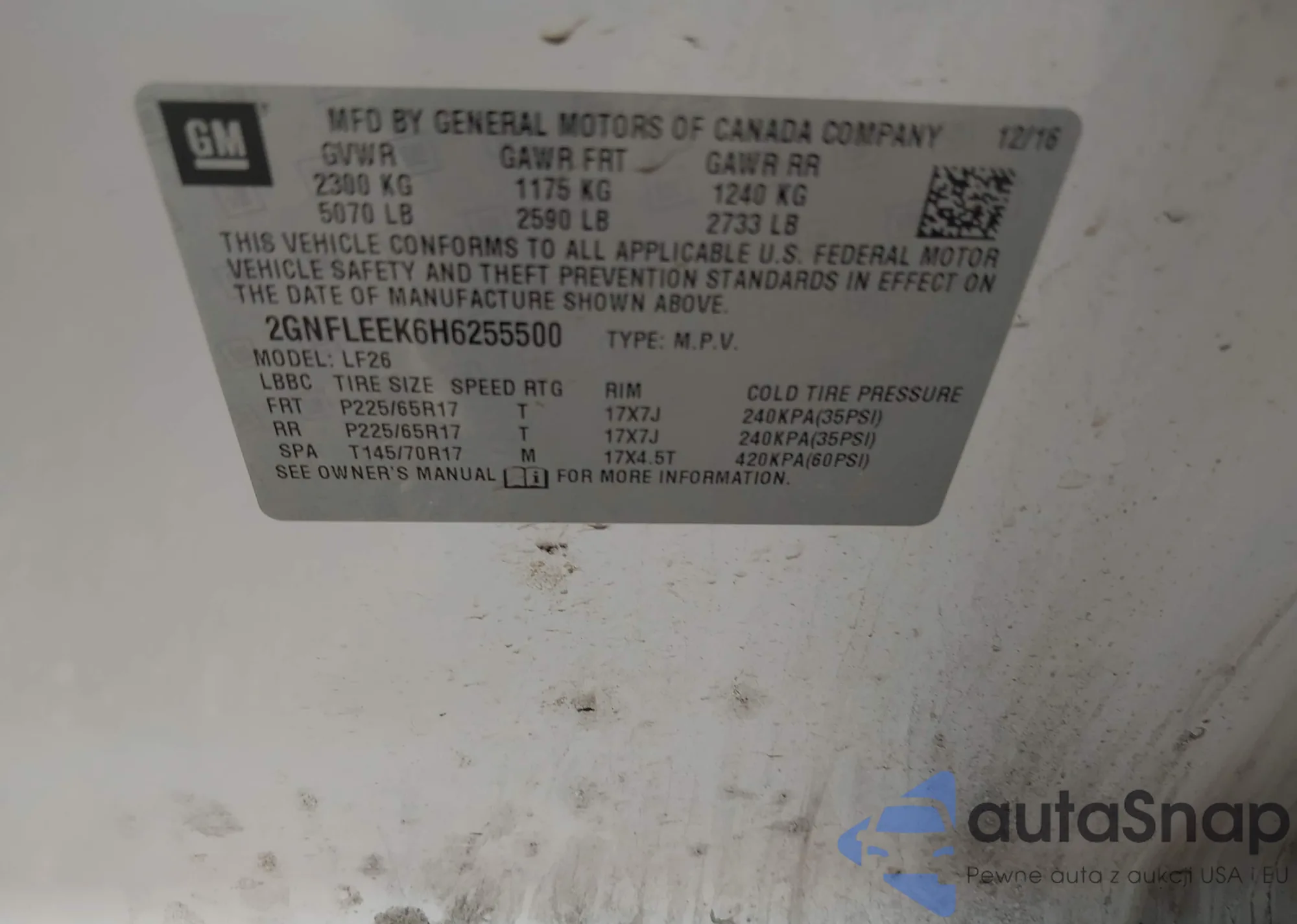 • VIN 2GNFLEEK6H6255500