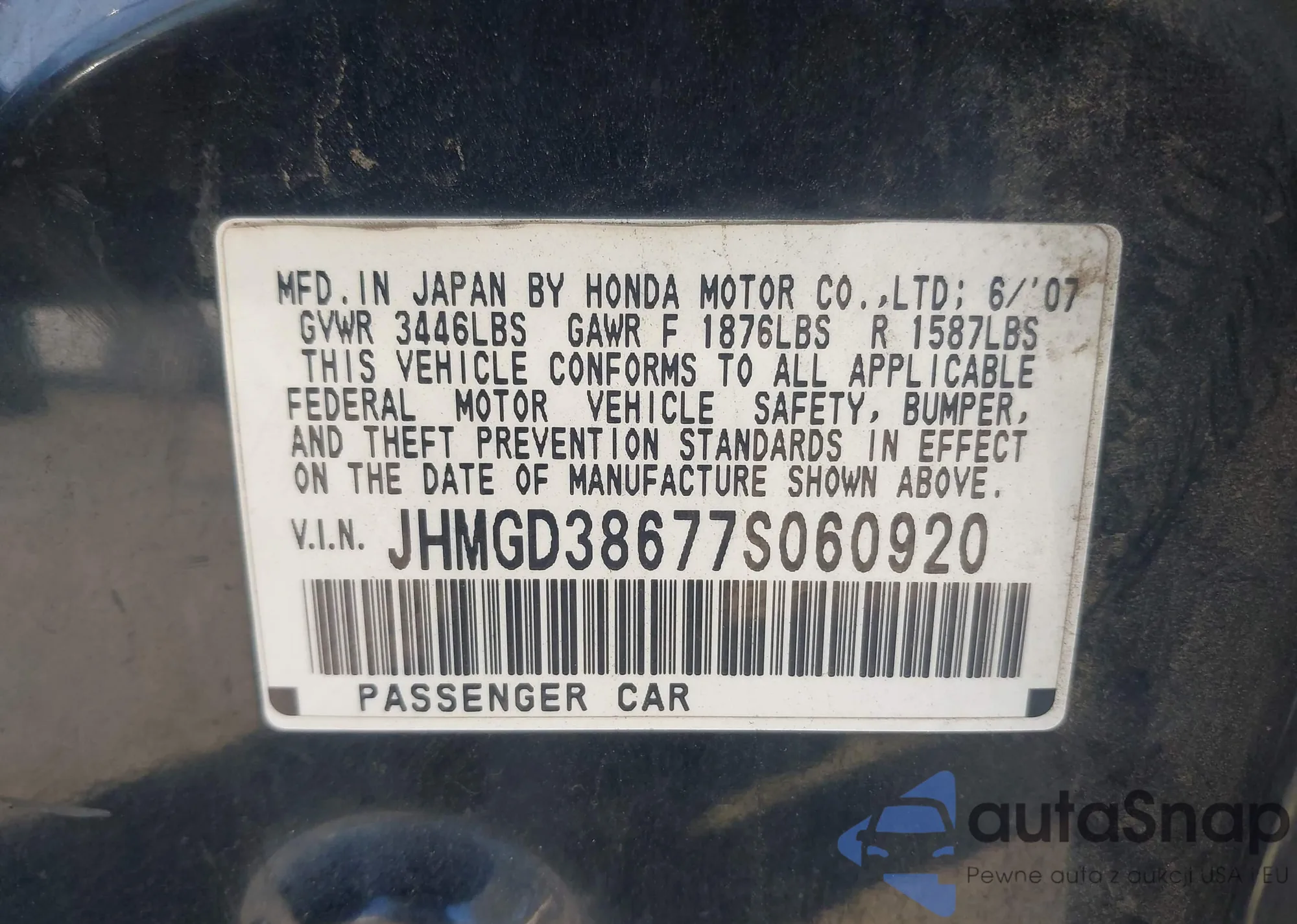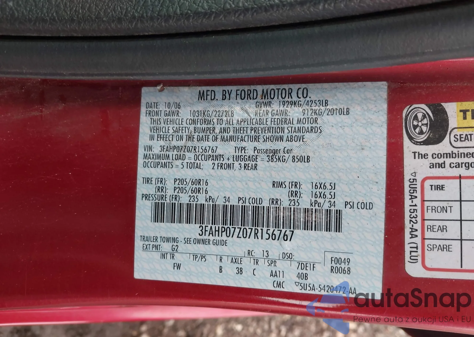 • VIN 3FAHP07Z07R156767
