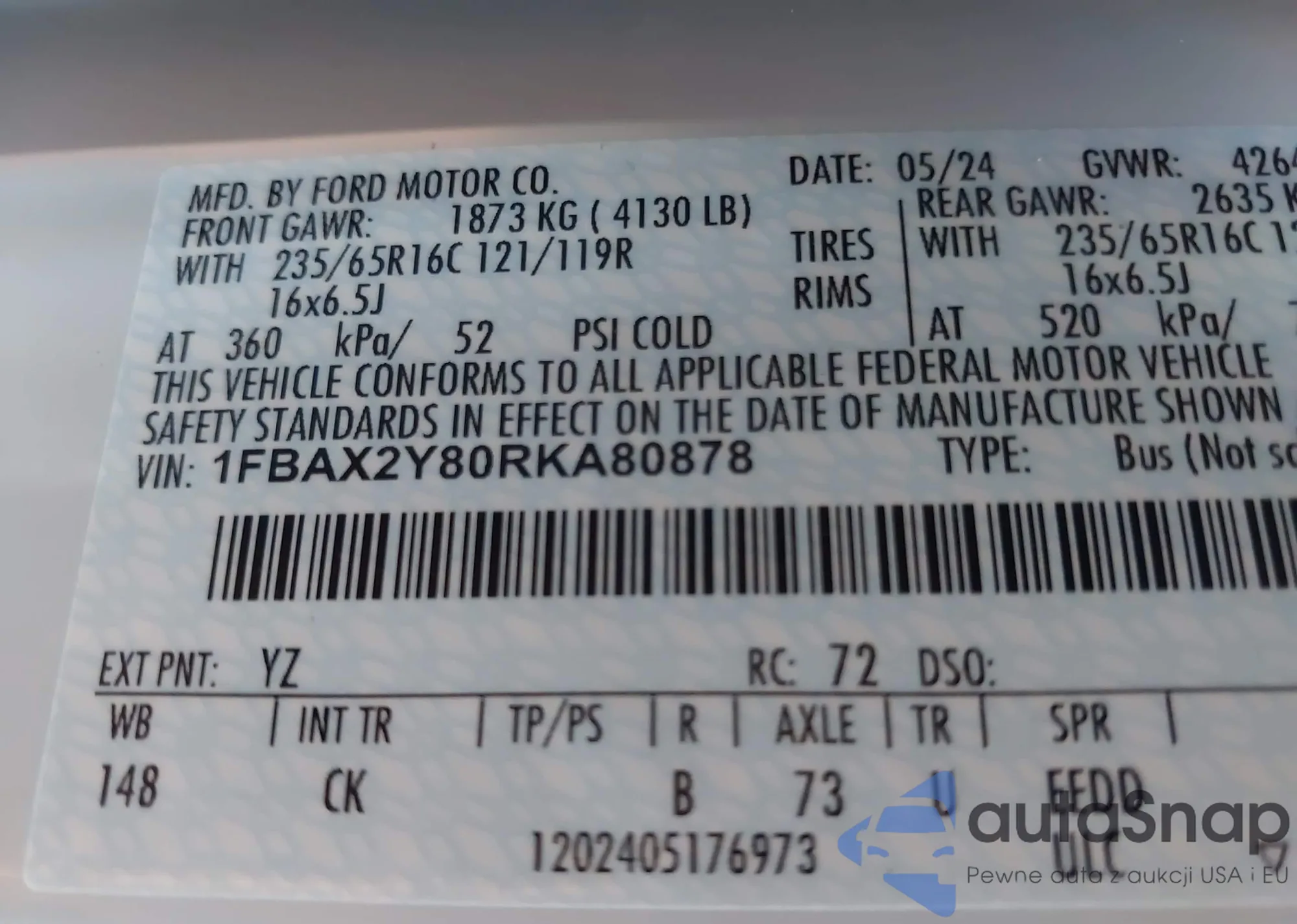 • VIN 1FBAX2Y80RKA80878