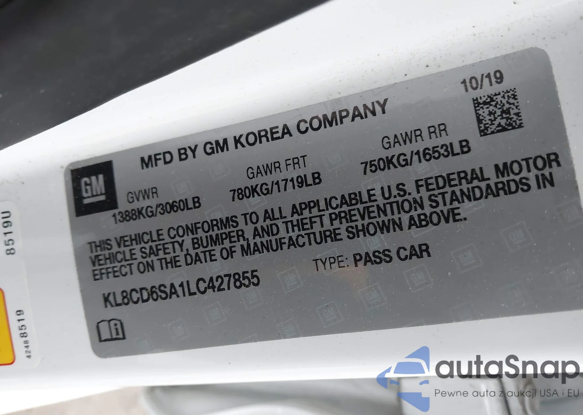 • VIN KL8CD6SA1LC427855