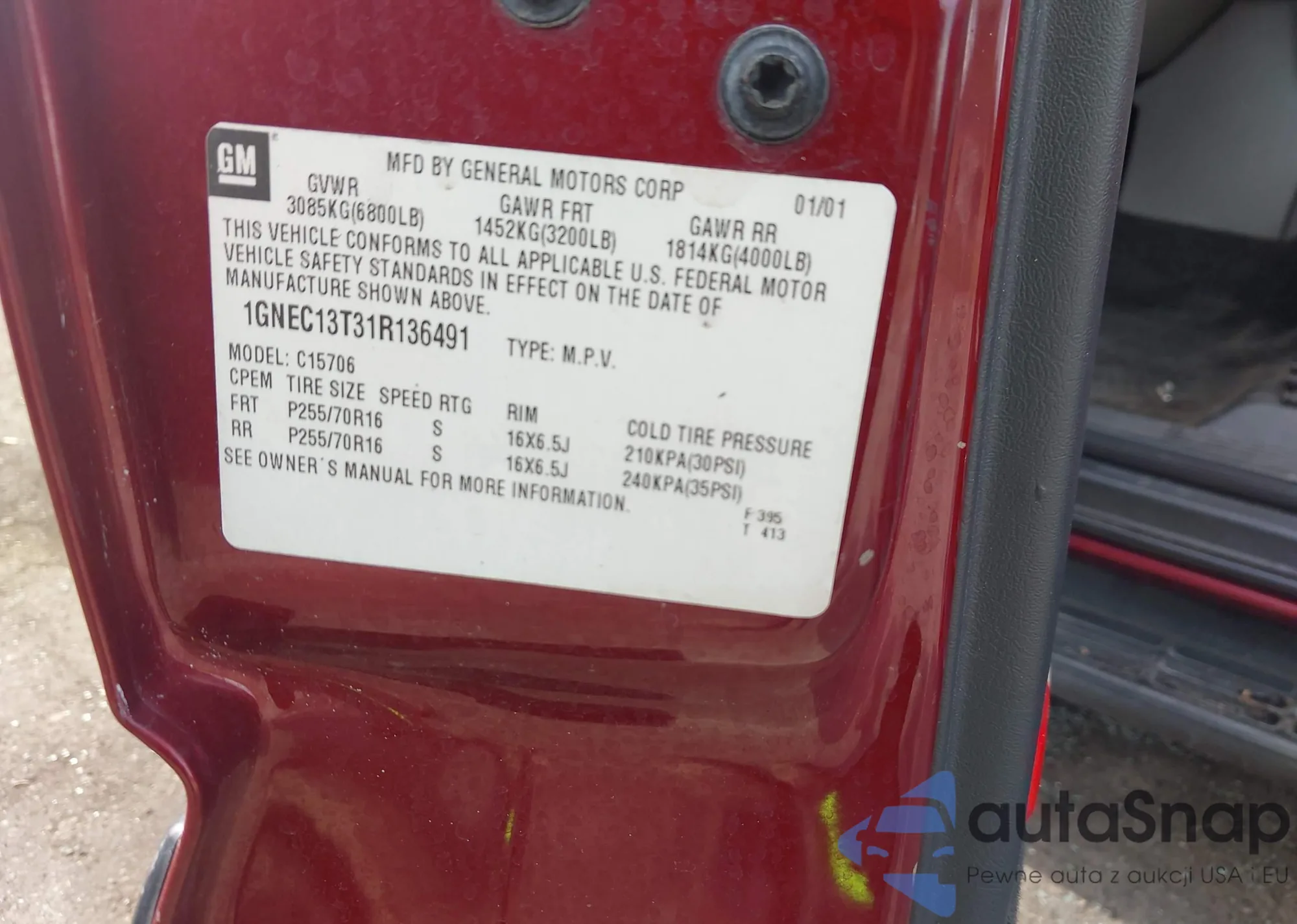 • VIN 1GNEC13T31R136491