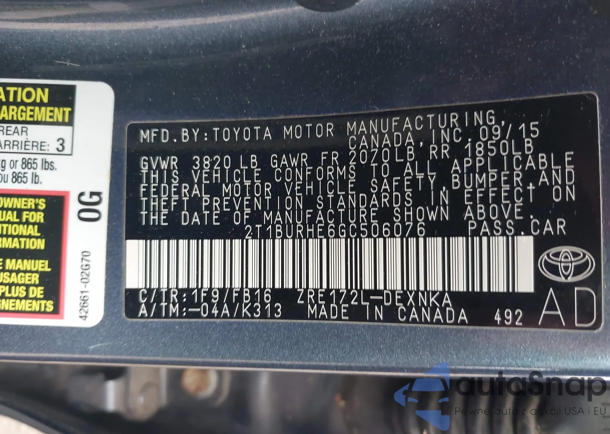 LOT: 44097726 VIN: 1NXBR32E36Z692115