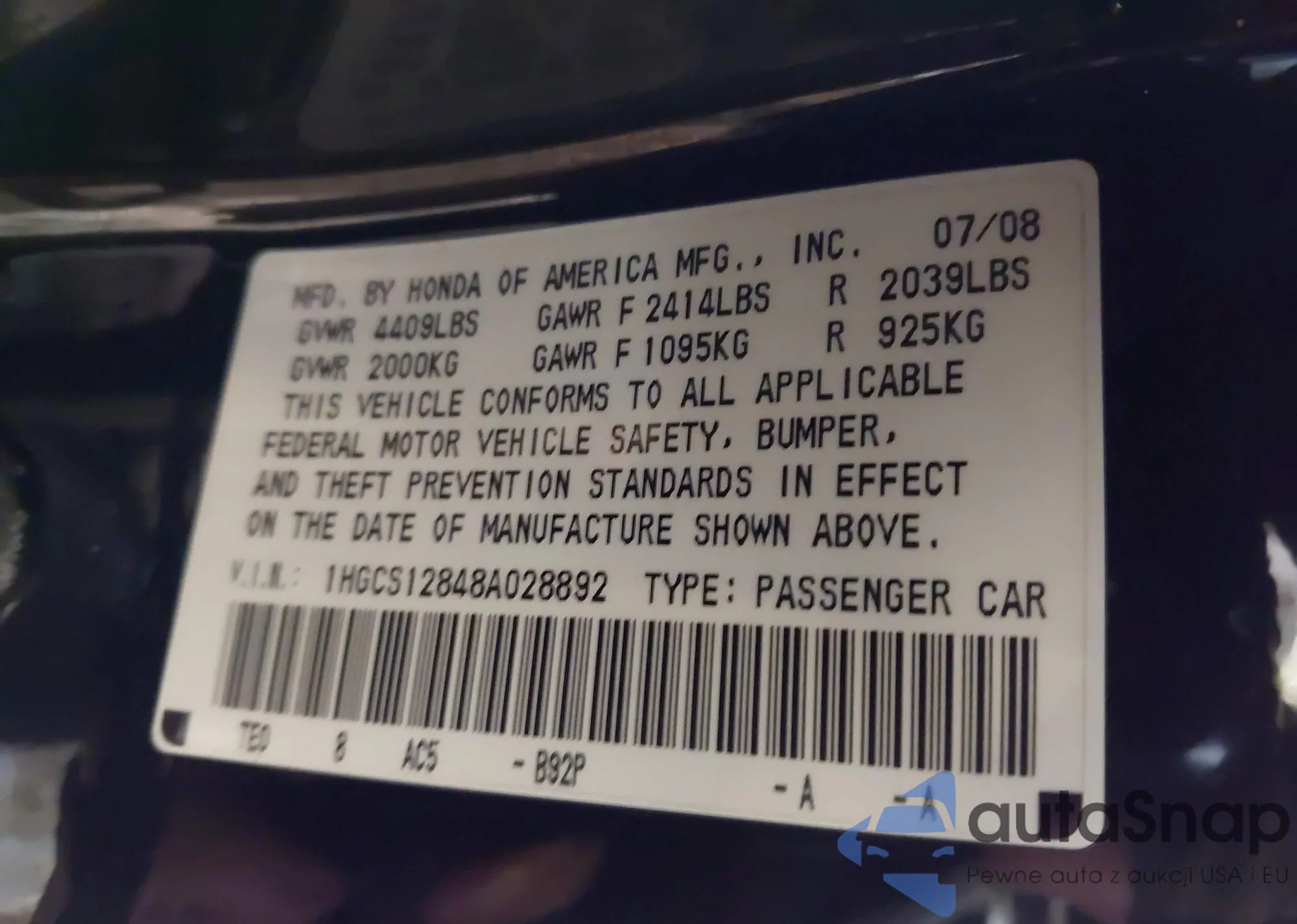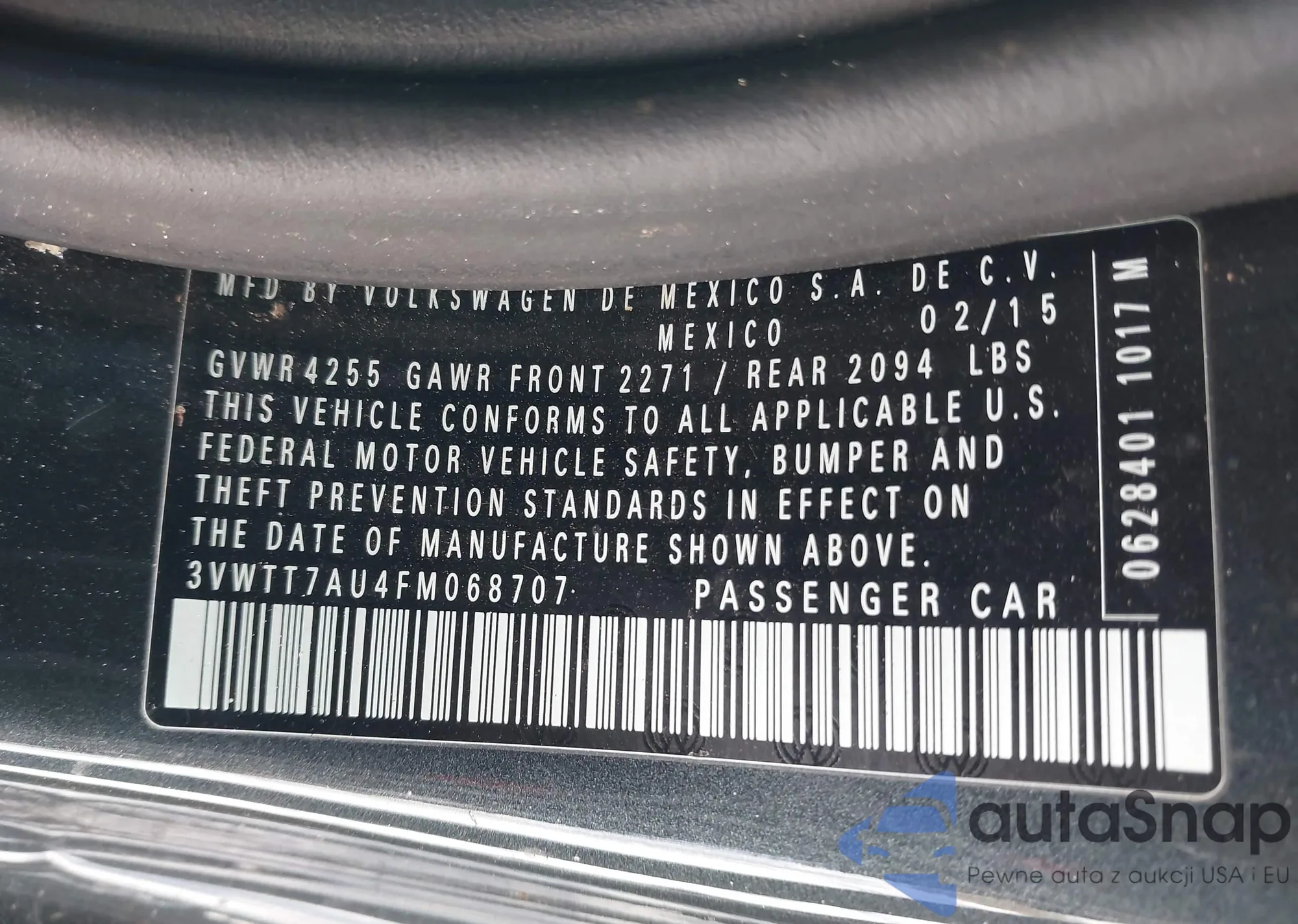 • VIN 3VWTT7AU4FM068707