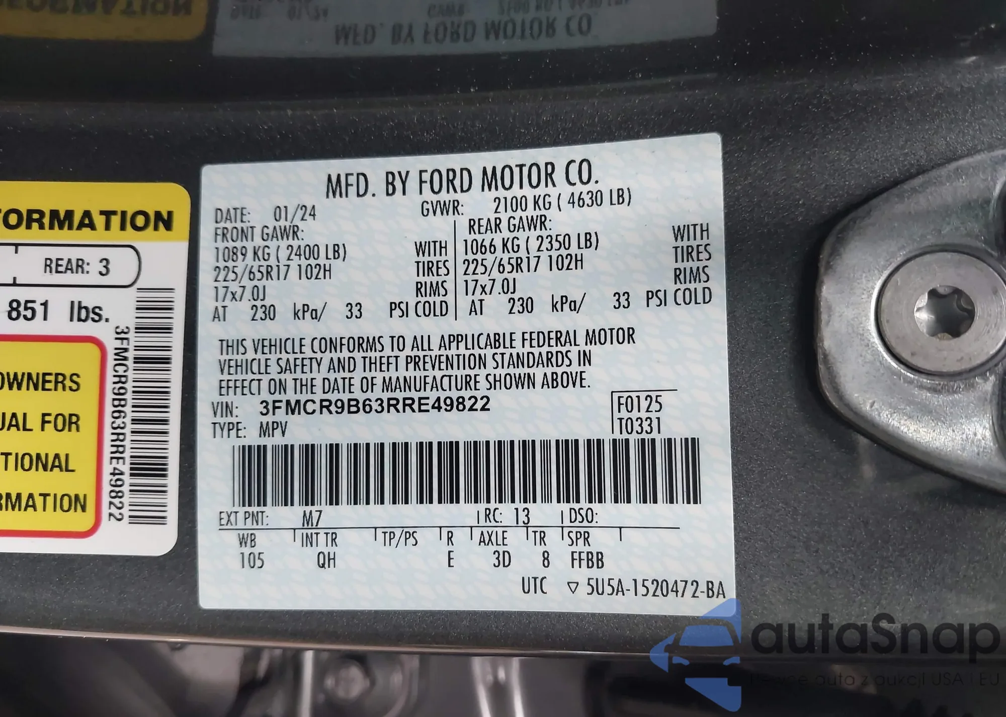 • VIN 3FMCR9B63RRE49822