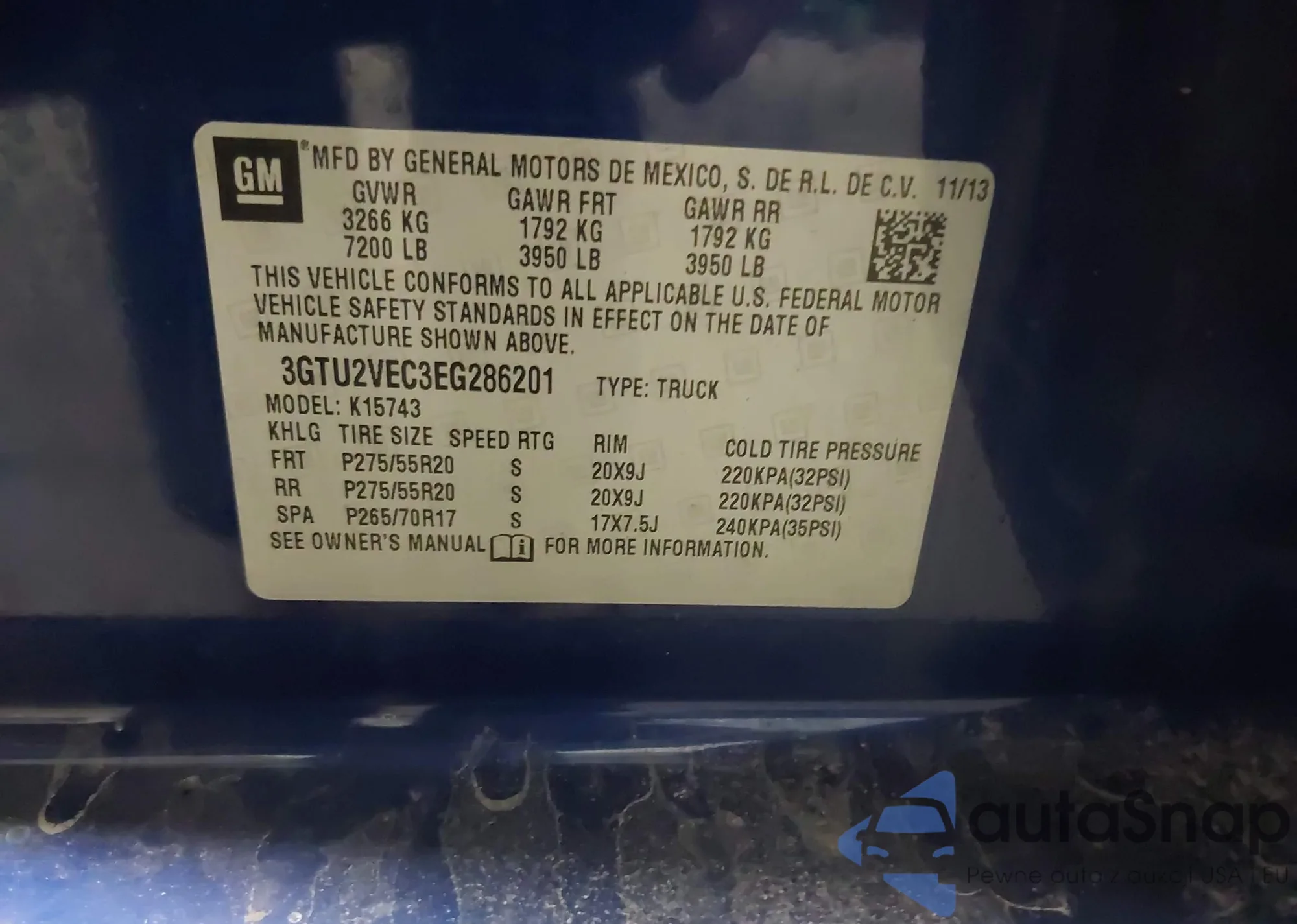 • VIN 3GTU2VEC3EG286201