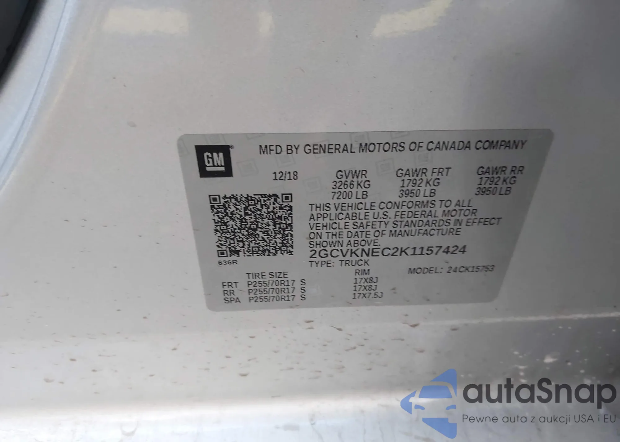 LOT: 43801150 VIN: 2GCVKNEC2K1157424