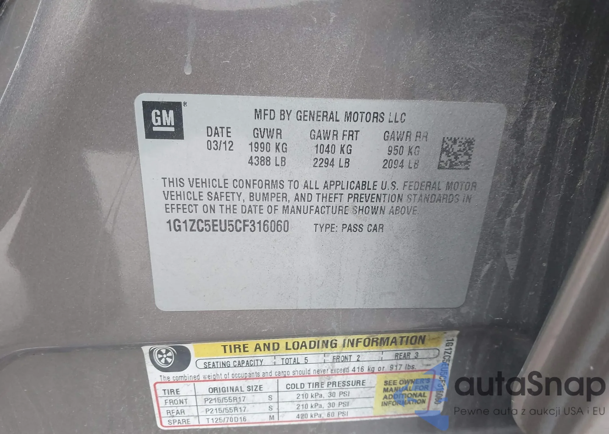 • VIN 1G1ZC5EU5CF316060