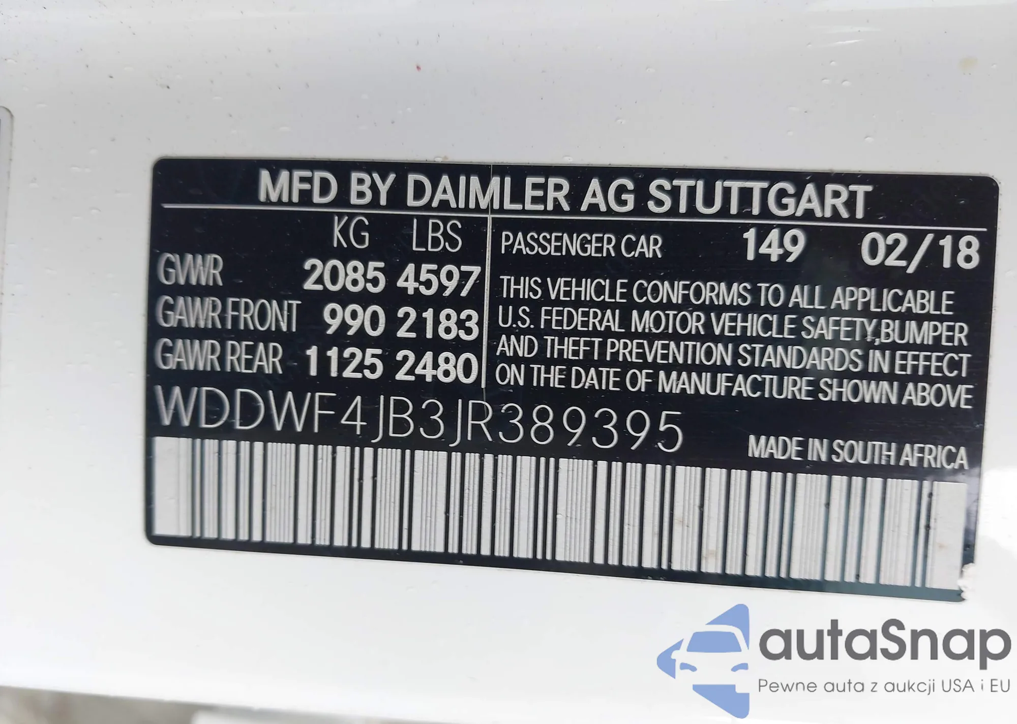 • VIN WDDWF4JB3JR389395