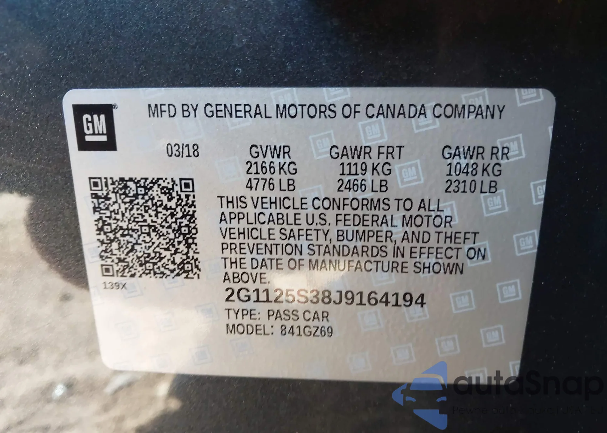 • VIN 2G1125S38J9164194