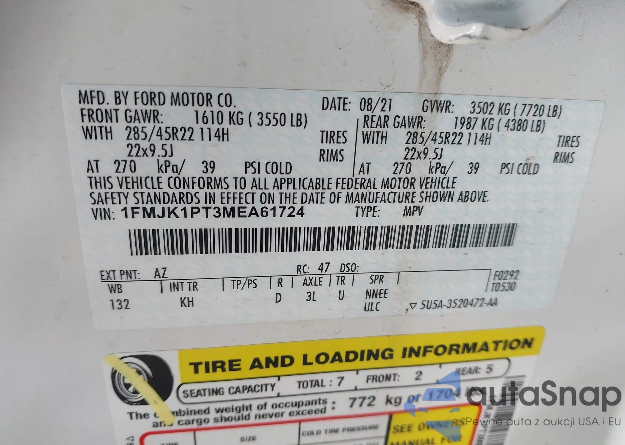 • VIN 1FMJK1PT3MEA61724