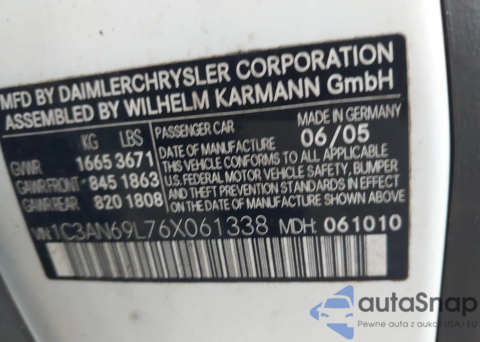 • VIN 1C3AN69L76X061338