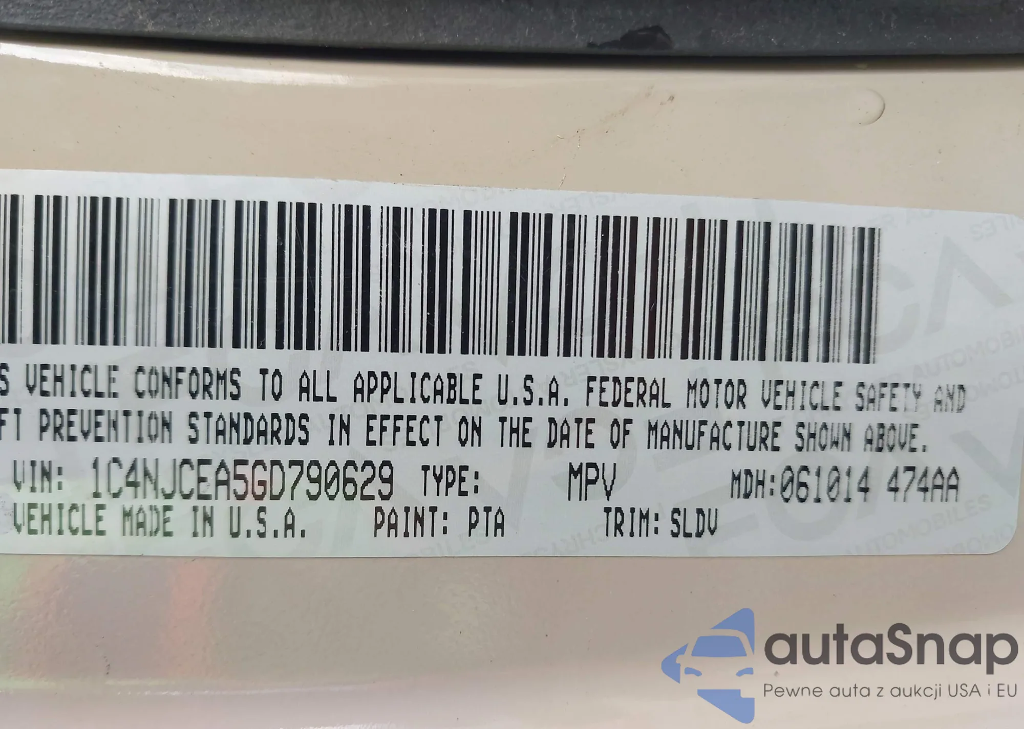 LOT: 43768789 VIN: 1C4NJCEA5GD790629