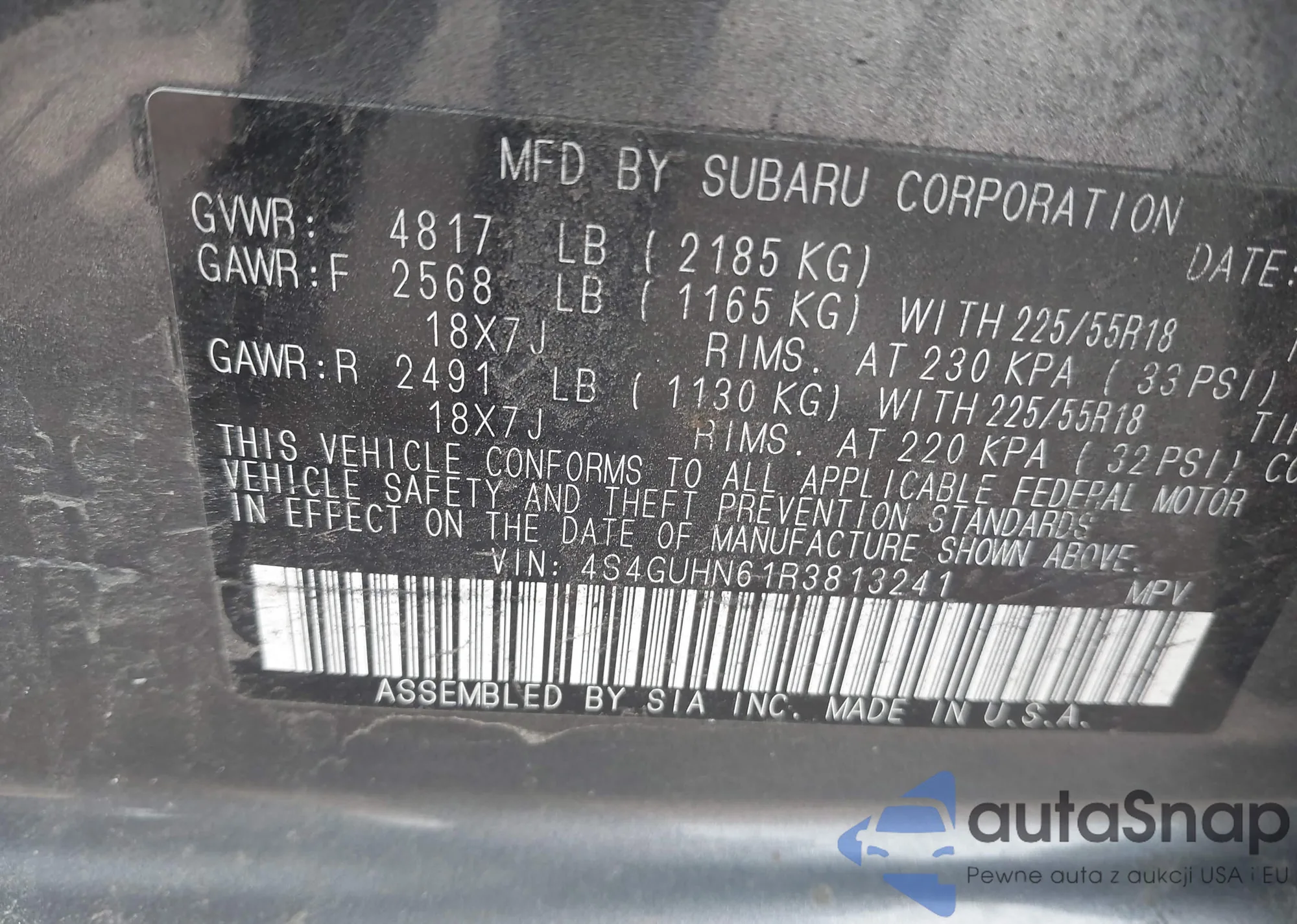 • VIN 4S4GUHN61R3813241