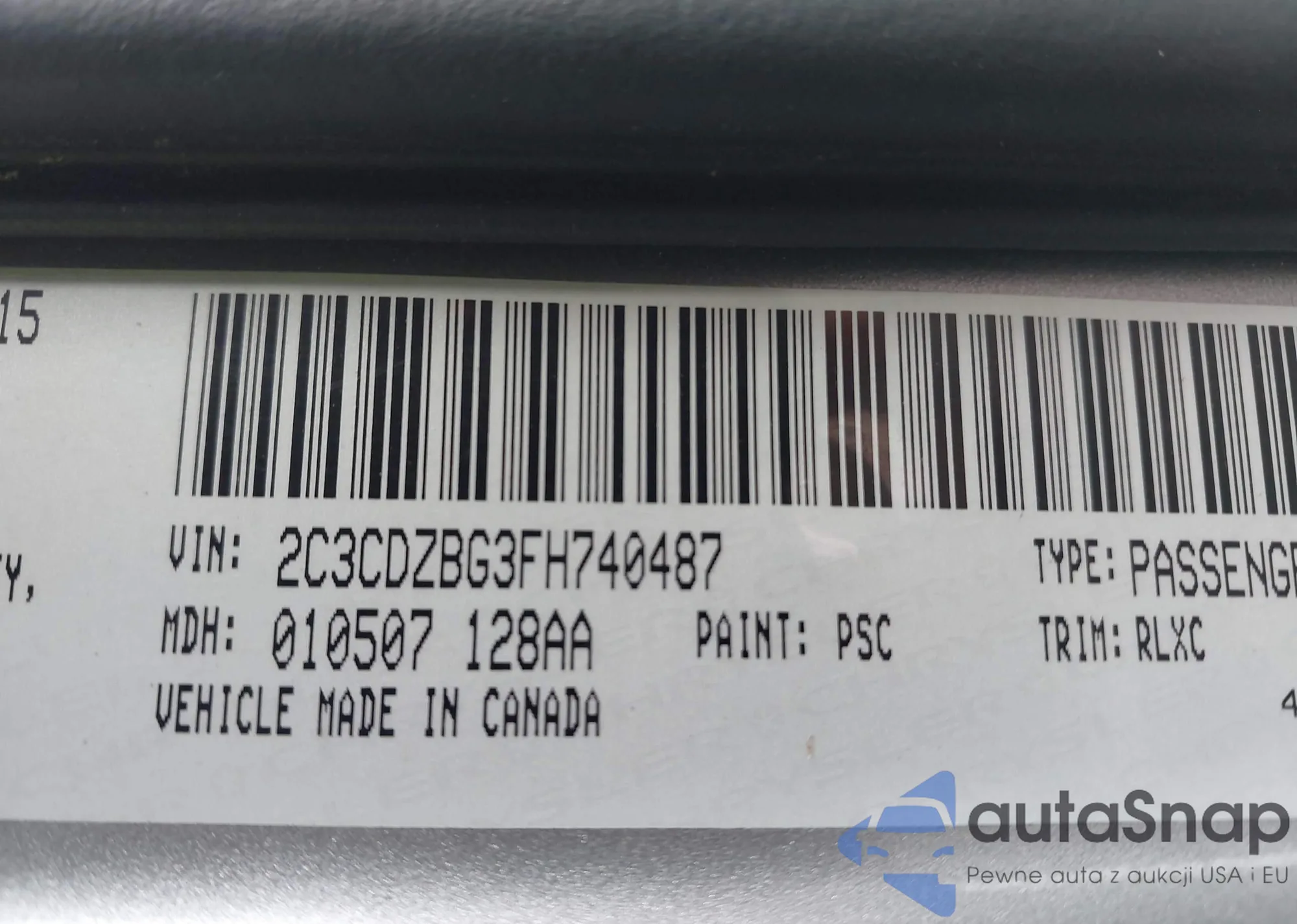 LOT: 43857637 VIN: 2C3CDZBG3FH740487