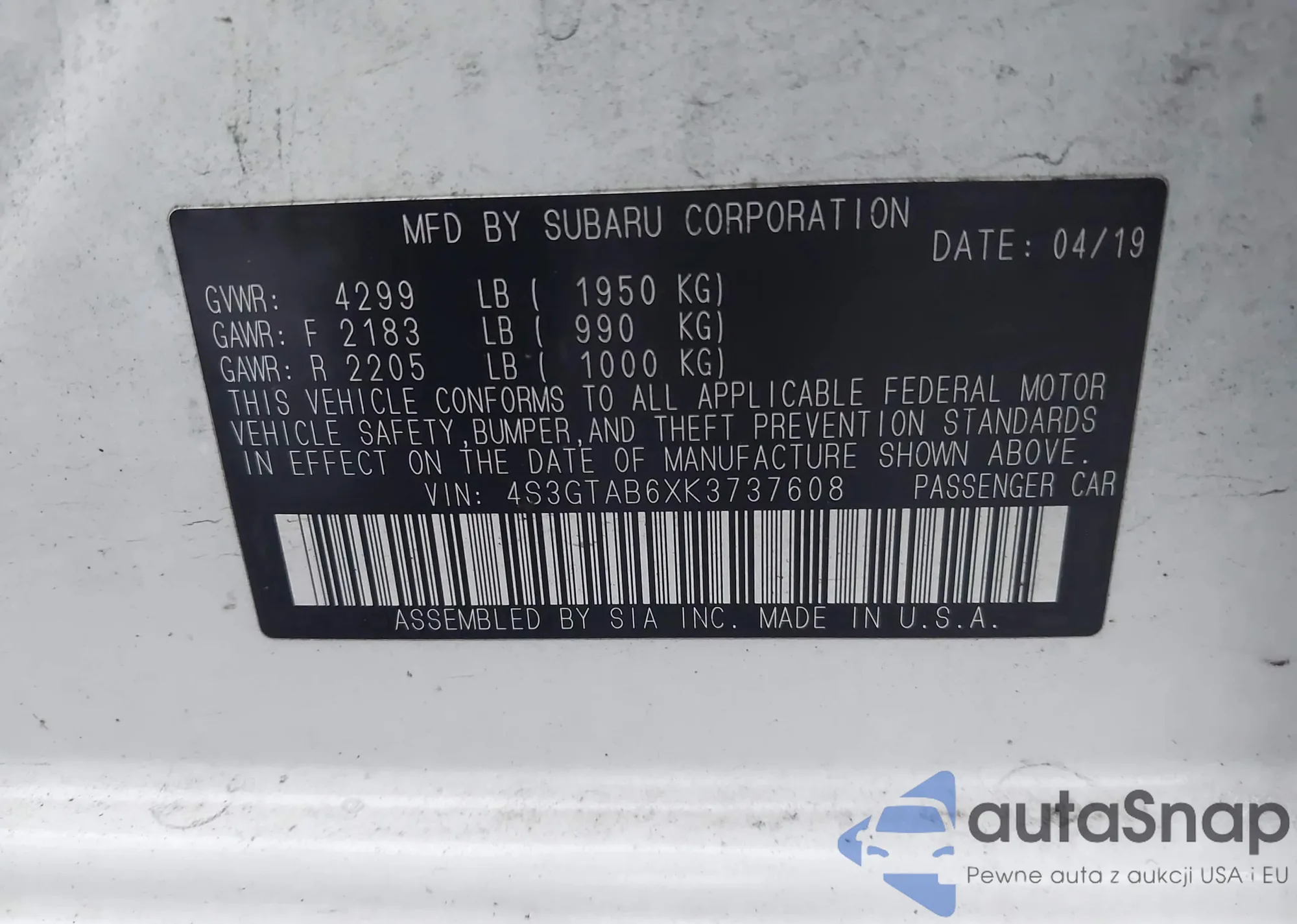 • VIN 7MMVABBL7TN454419
