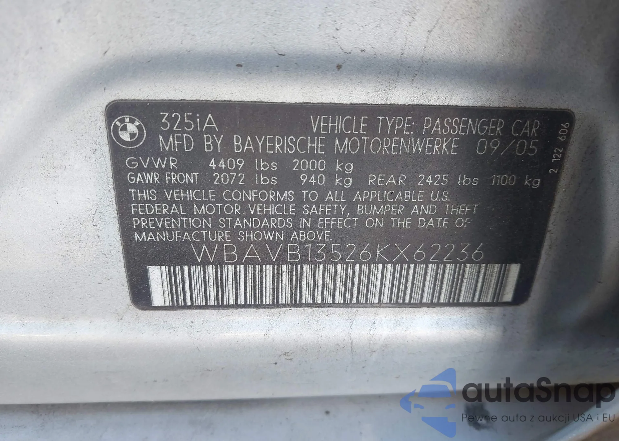 LOT: 43875433 VIN: WBAVB13526KX62236