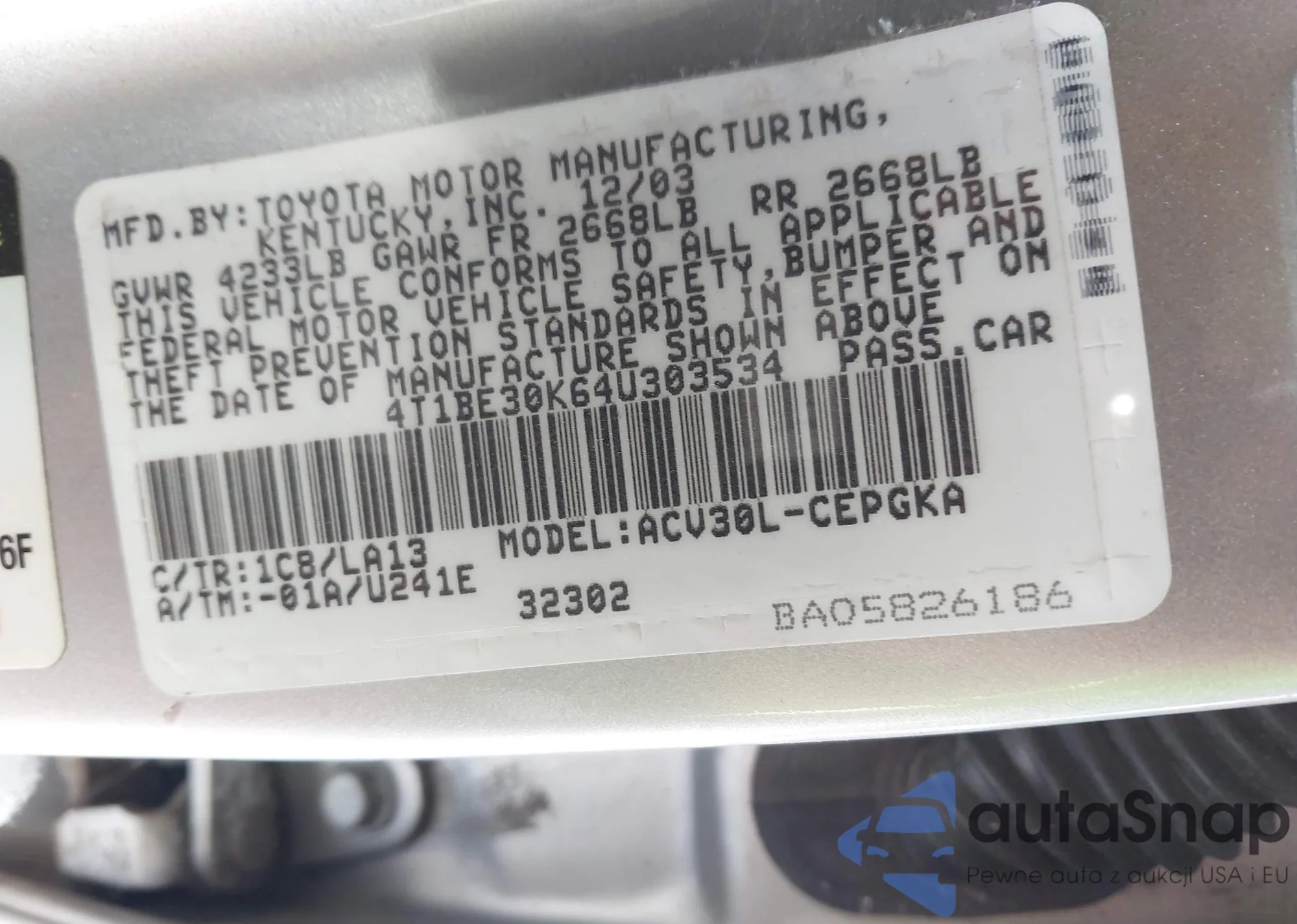 • VIN 4T1BE30K64U303534