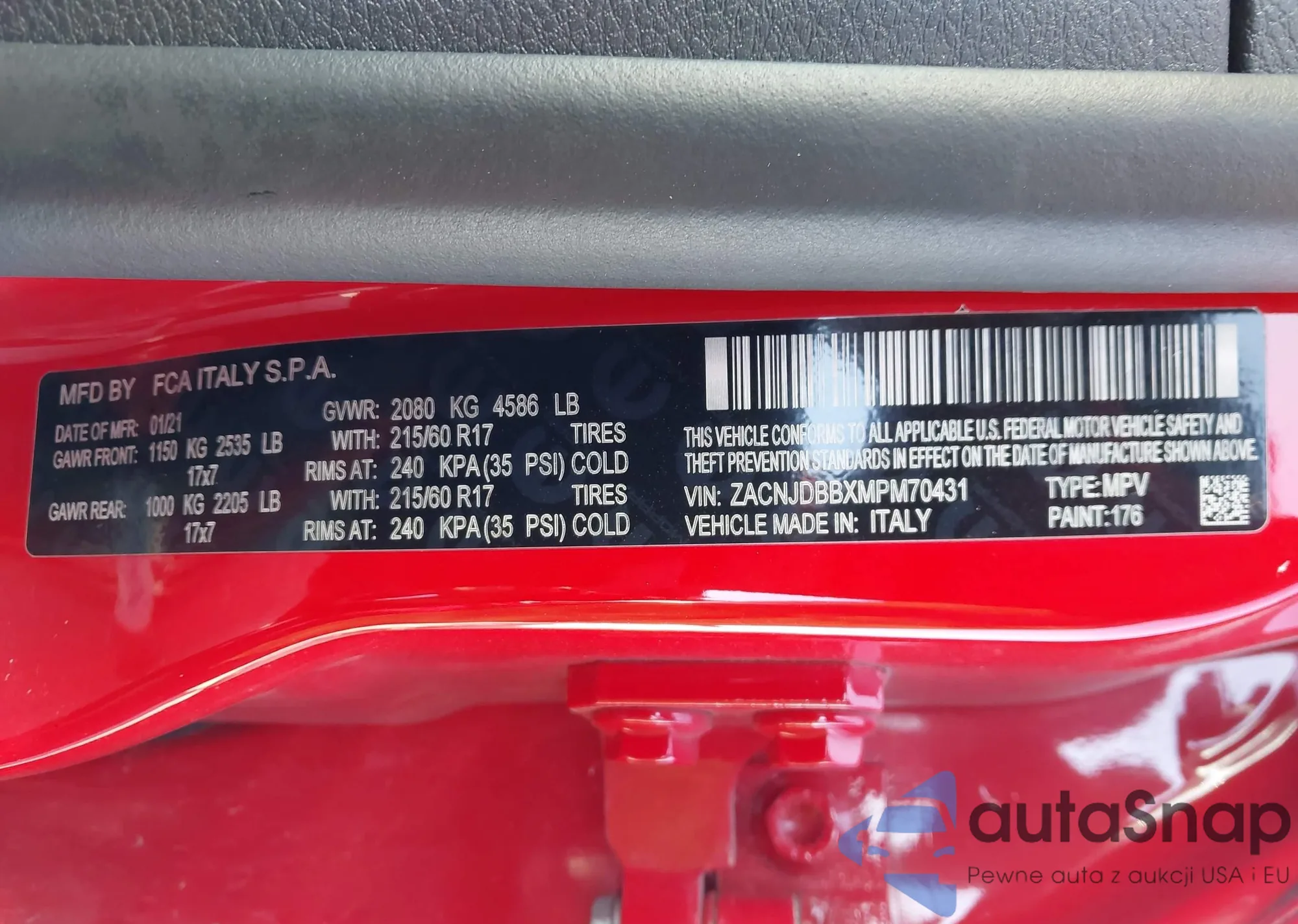 • VIN ZACNJDBBXMPM70431