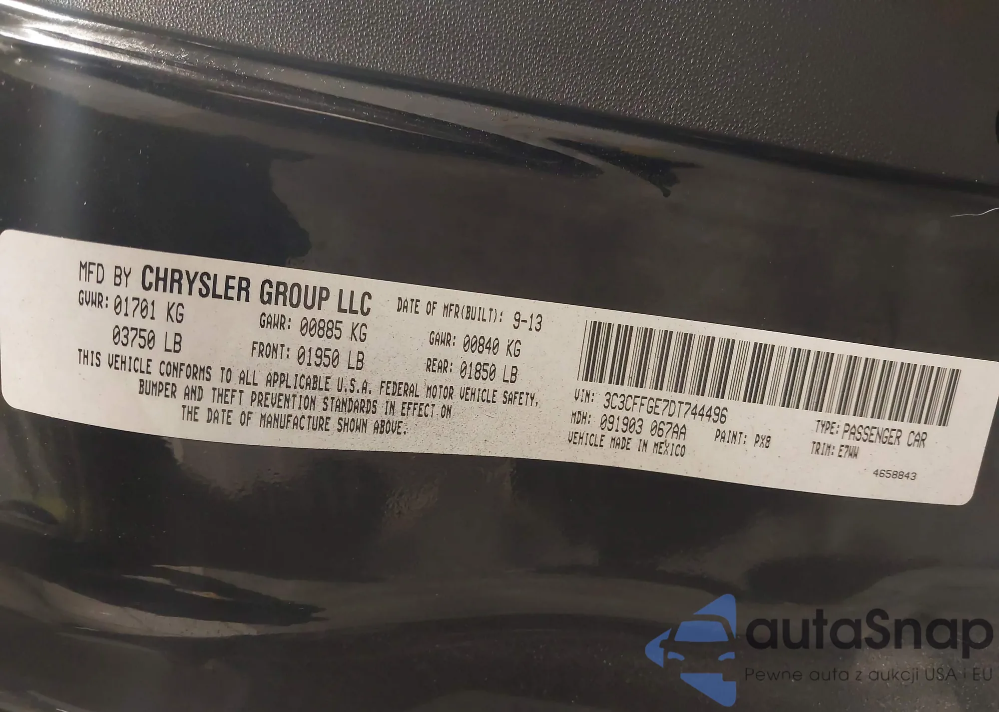 • VIN 3C3CFFGE7DT744496