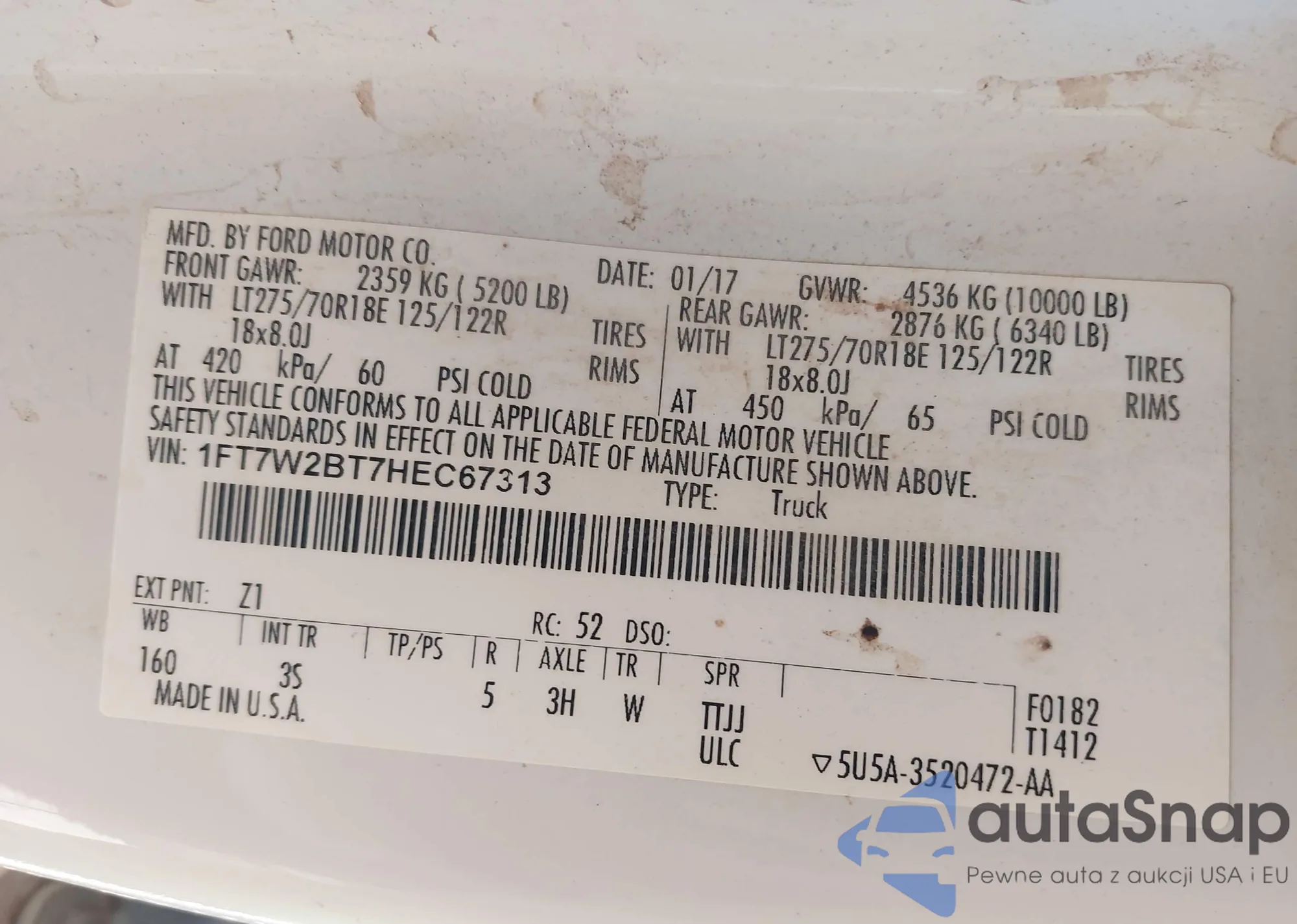 • VIN 1FT7W2BT7HEC67313