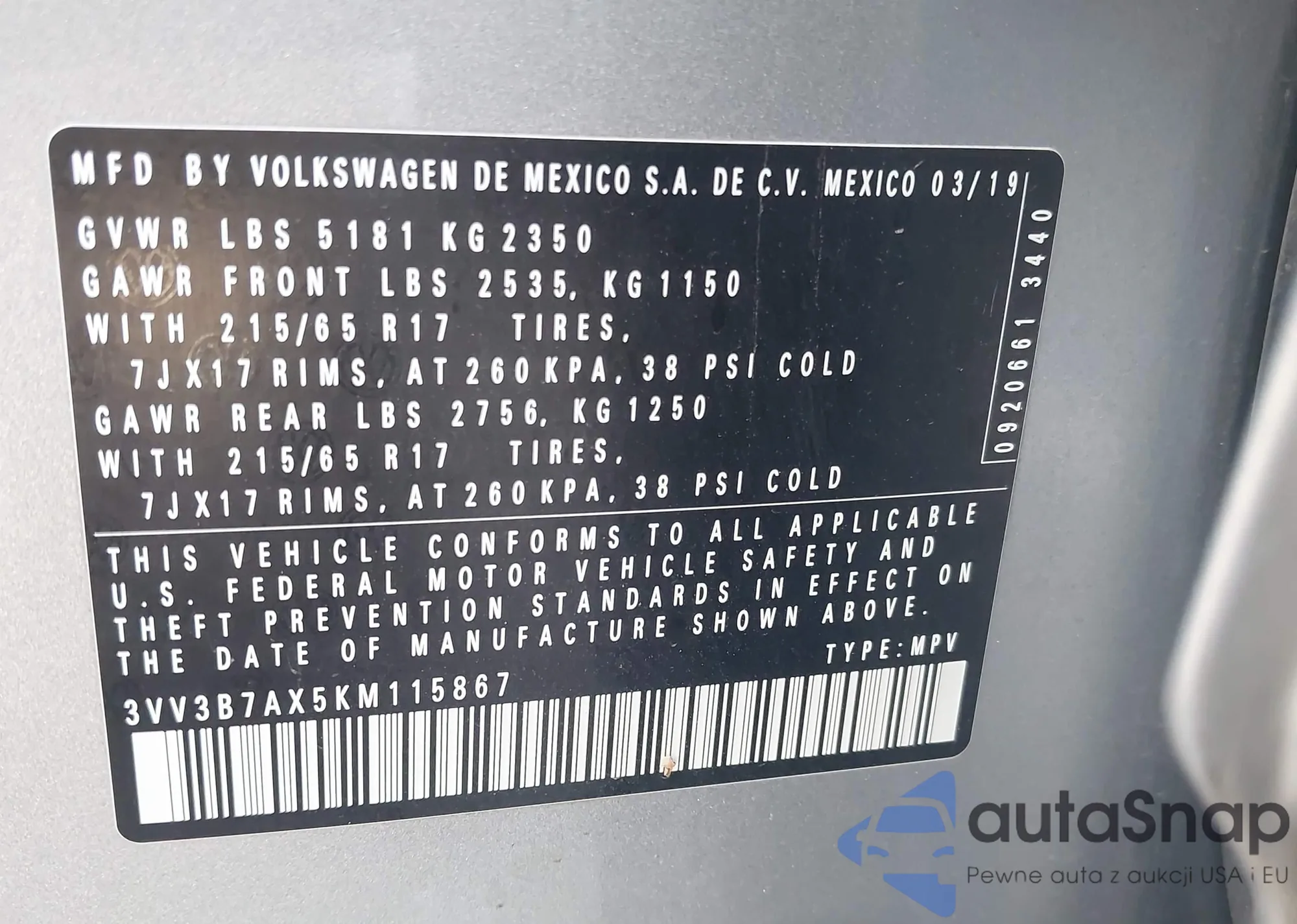 • VIN 3VV3B7AX5KM115867