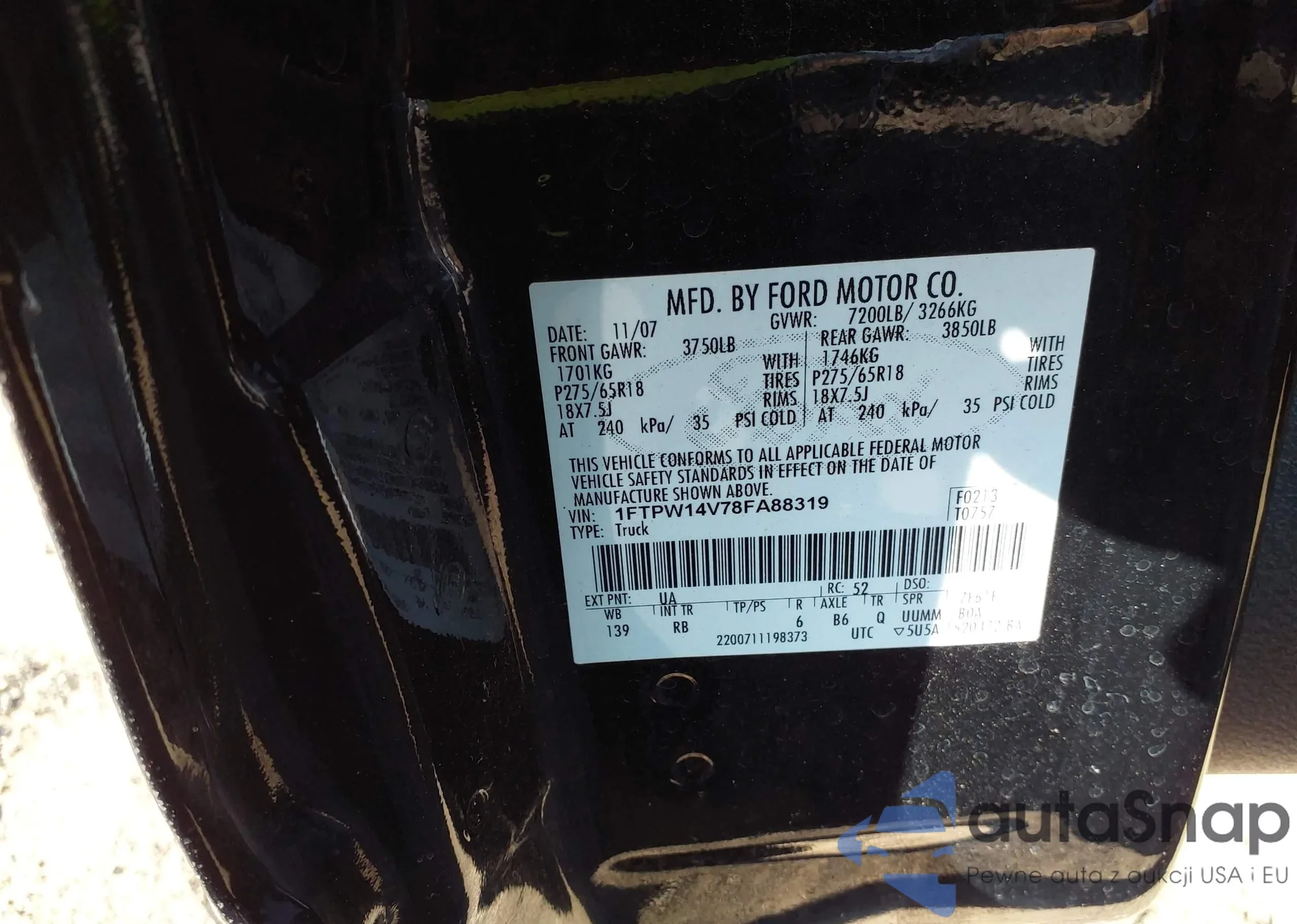 LOT: 43813940 VIN: 4T1BK46K27U509749